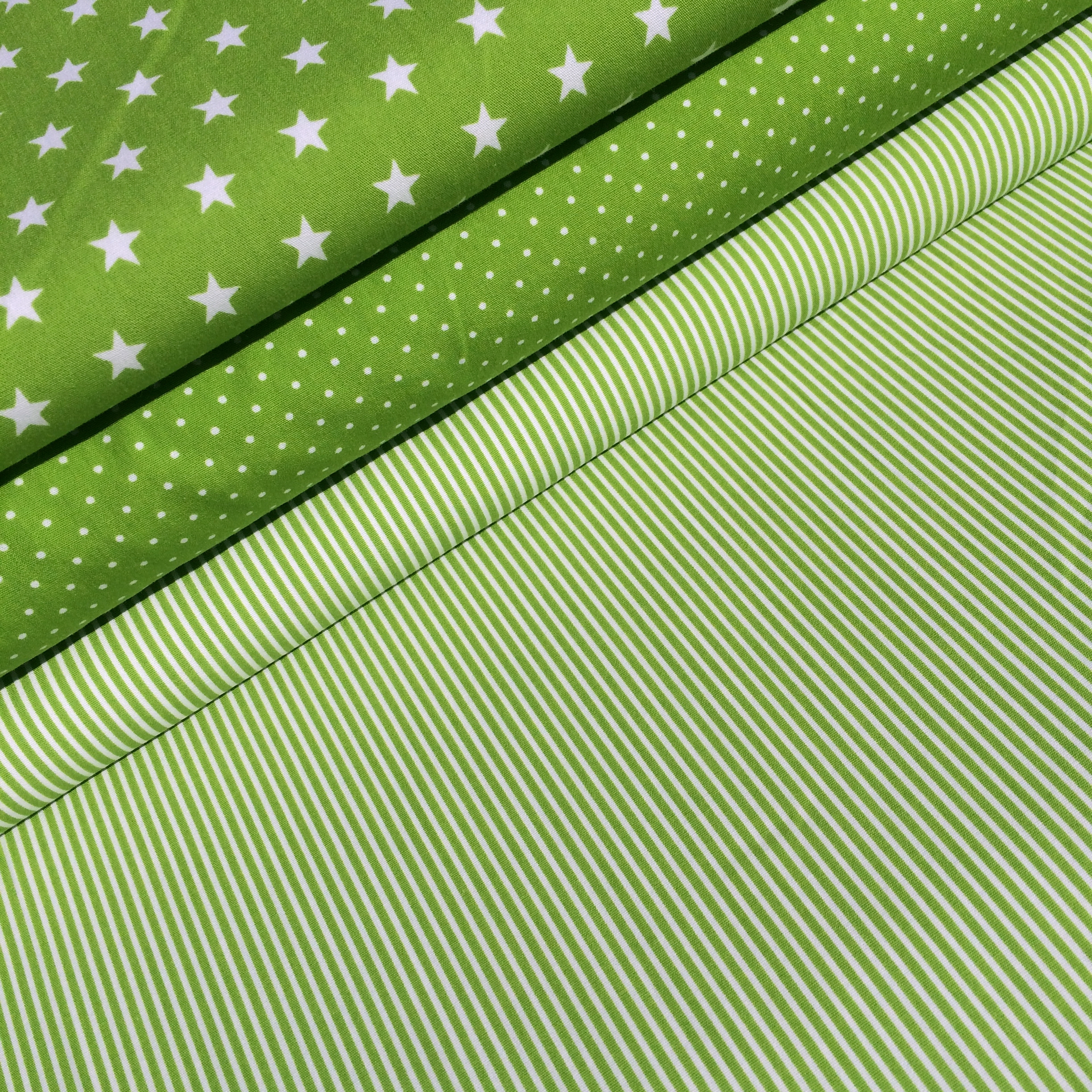 Startseite » Stoffe » Webware » Webware - Pakete » Baumwollpaket hellgrün/weiß - Punkte-Streifen-Sterne