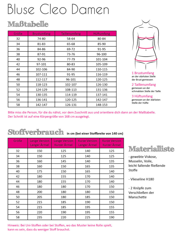 Eine Nahtzugabe von 1 cm ist bereits im Schnitt enthalten.