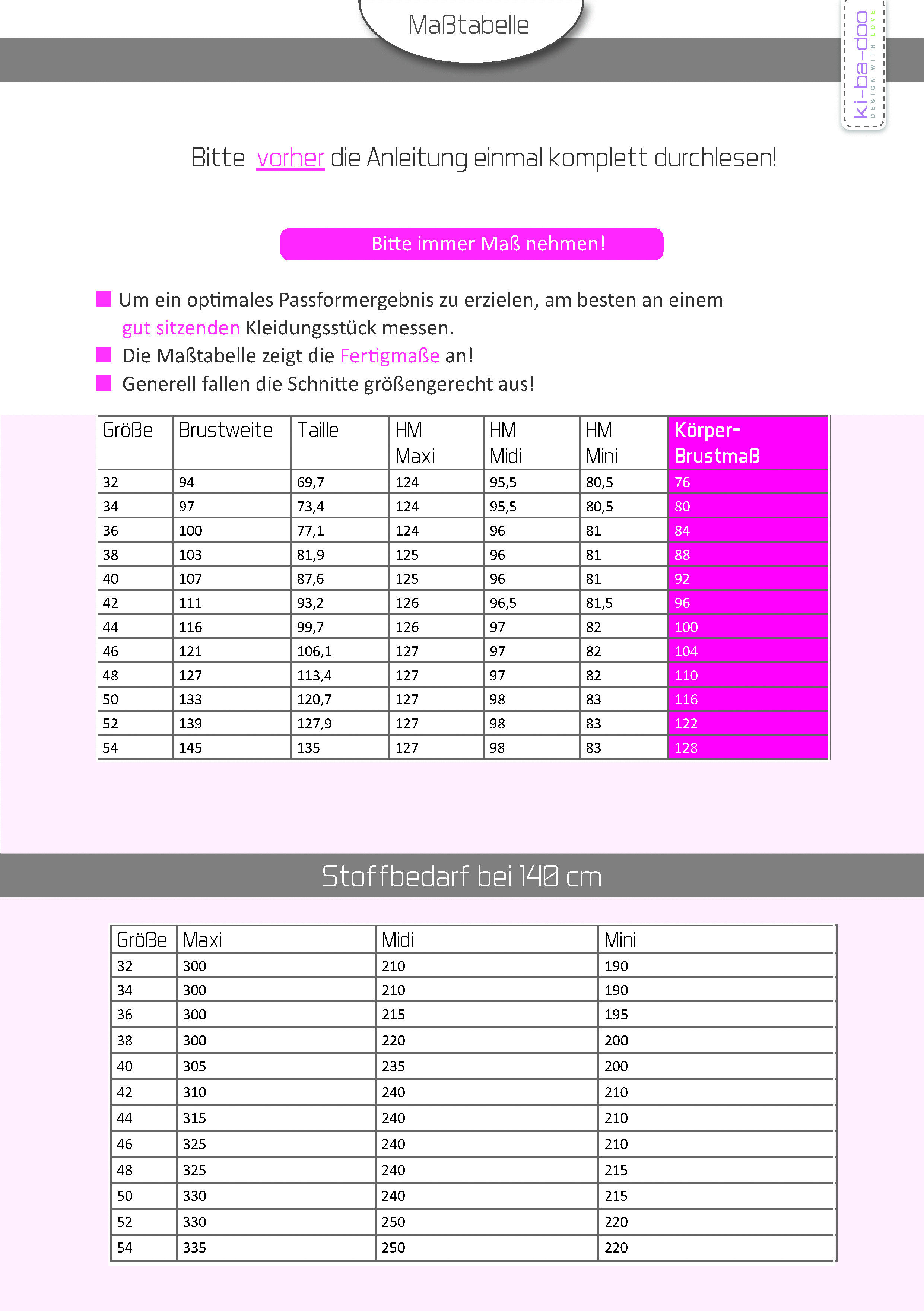 Das Schnittmuster beinhaltet die Größen 32 bis 54.