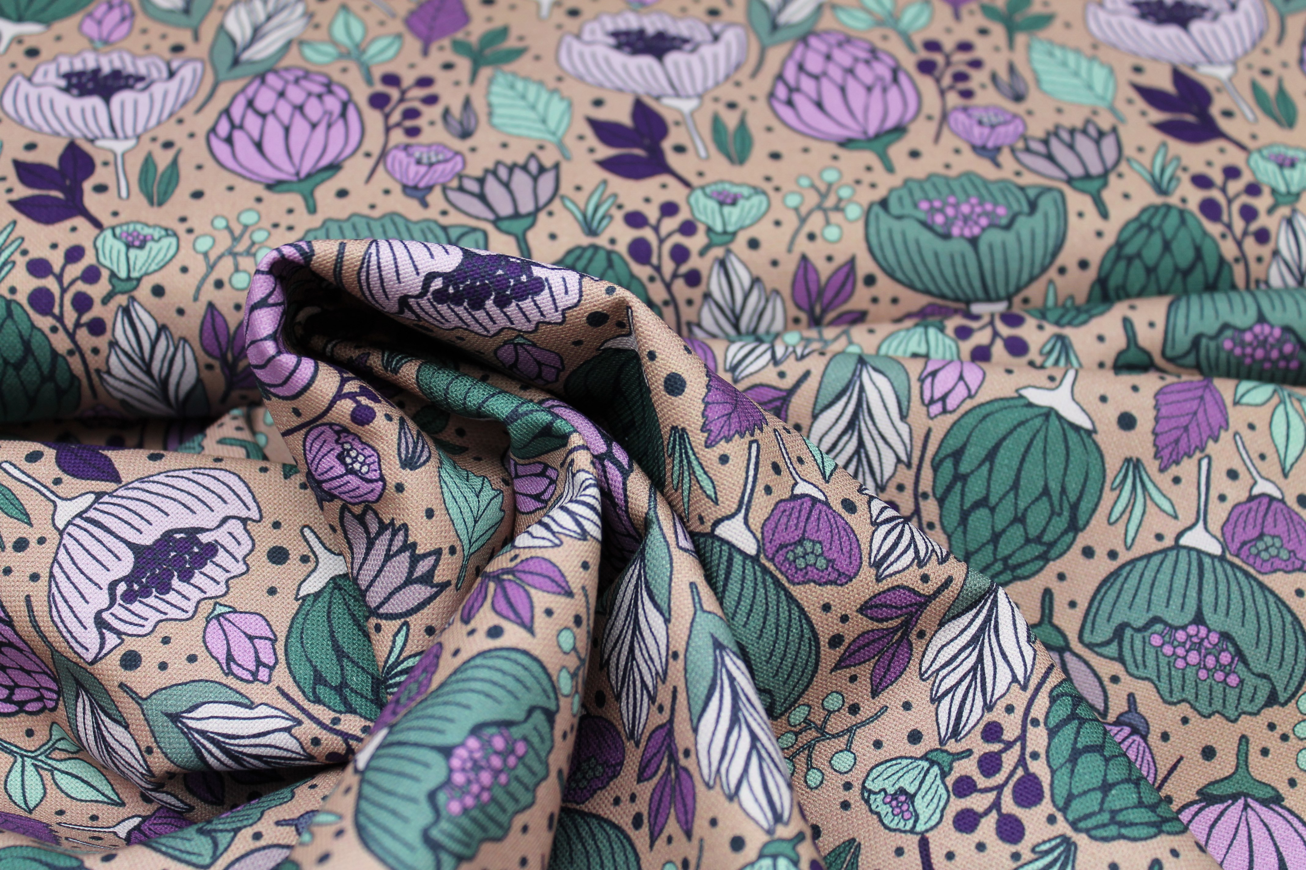 Schöner Canvas in blush mit Blumen und Blüten. Das Design stammt aus der Serie Garden Stories von Emjo Design. Hersteller: Swafing. Aus Canvas kann man tolle Kissenbezüge und Dekoobjekte nähen.