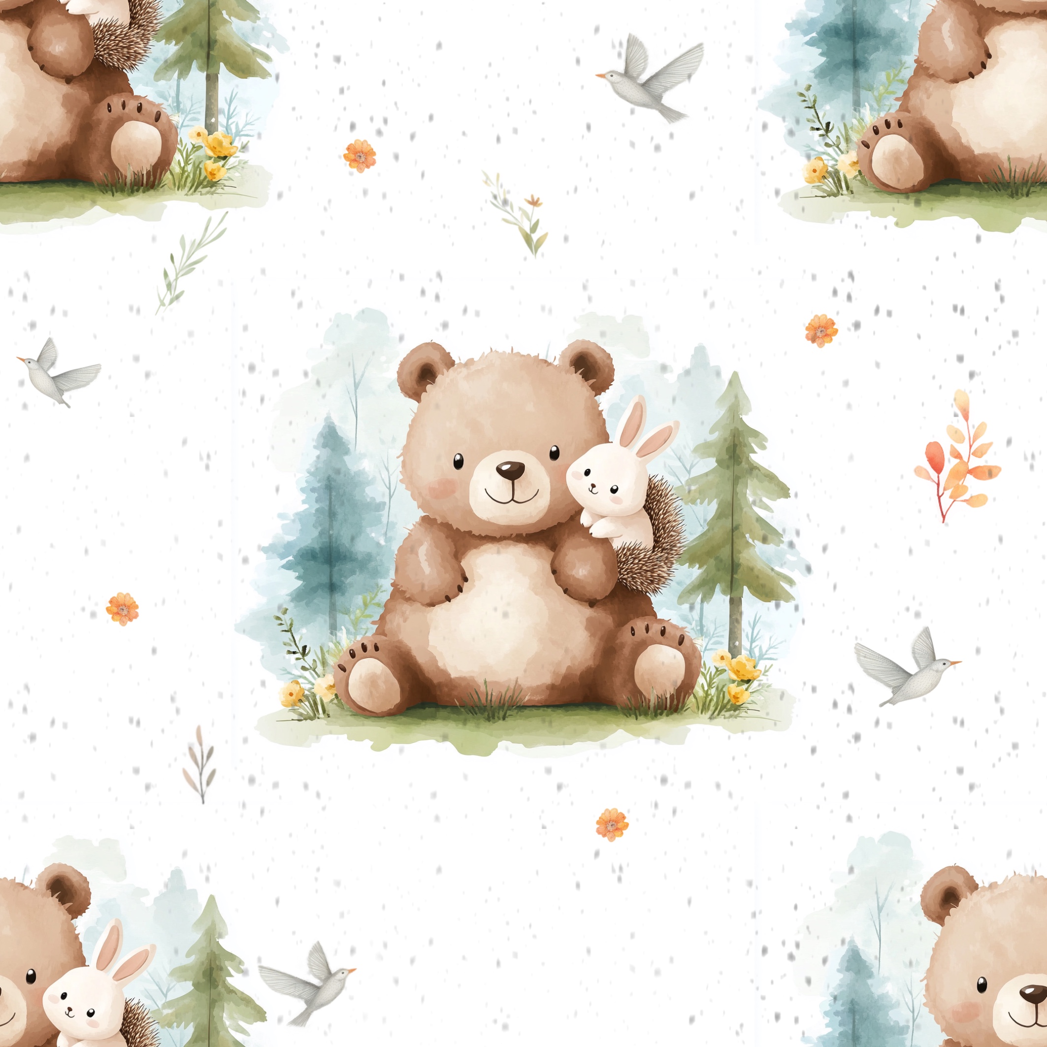 Startseite » Eigene Stoffe » Lagerware Eigenproduktionen » Emil & Anton - Bär und Hase - Bio-Jersey / Bio-French Terry