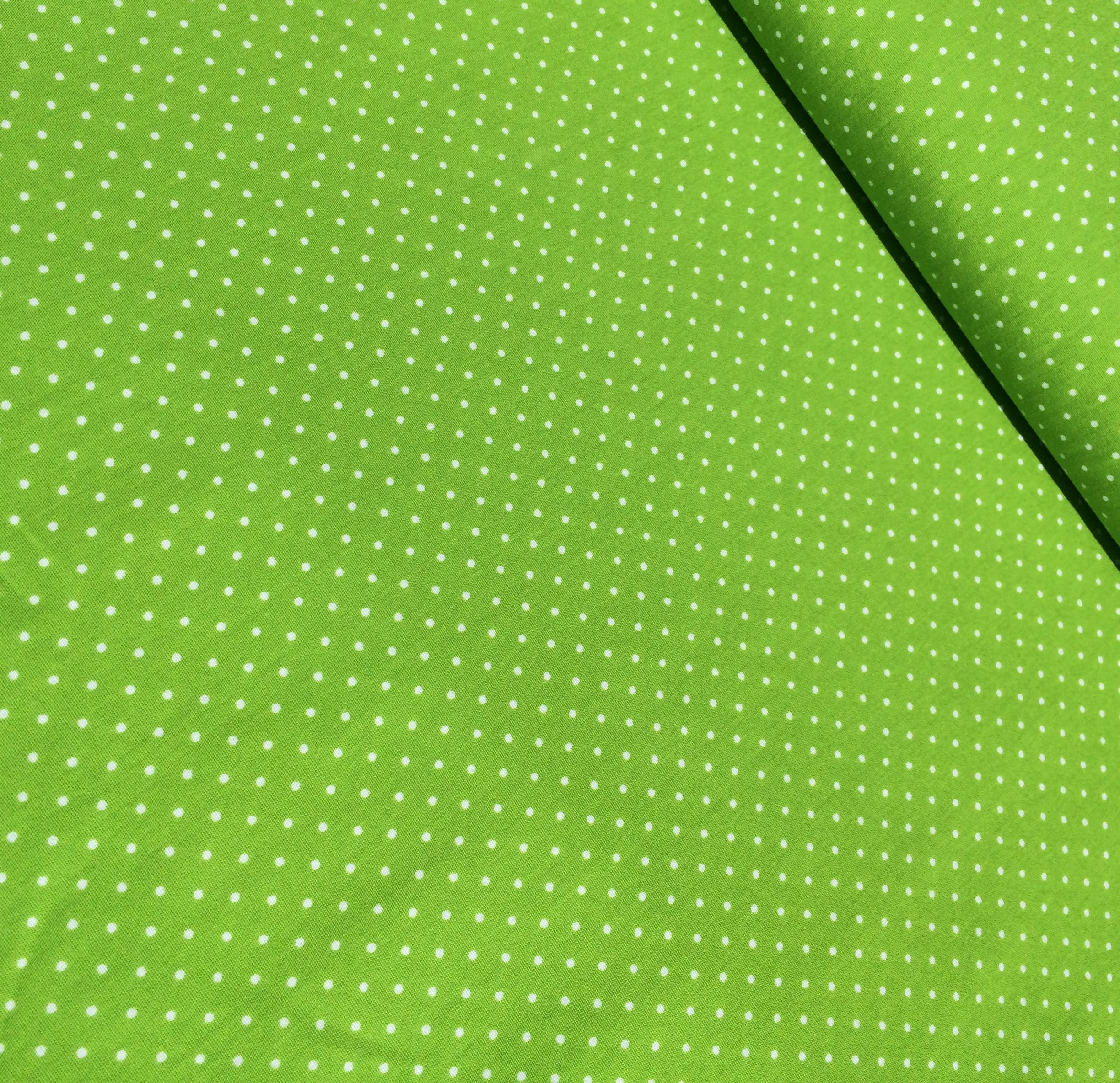 Hübsche Webware aus 100% Baumwolle in hellgrün mit weißen Punkten.