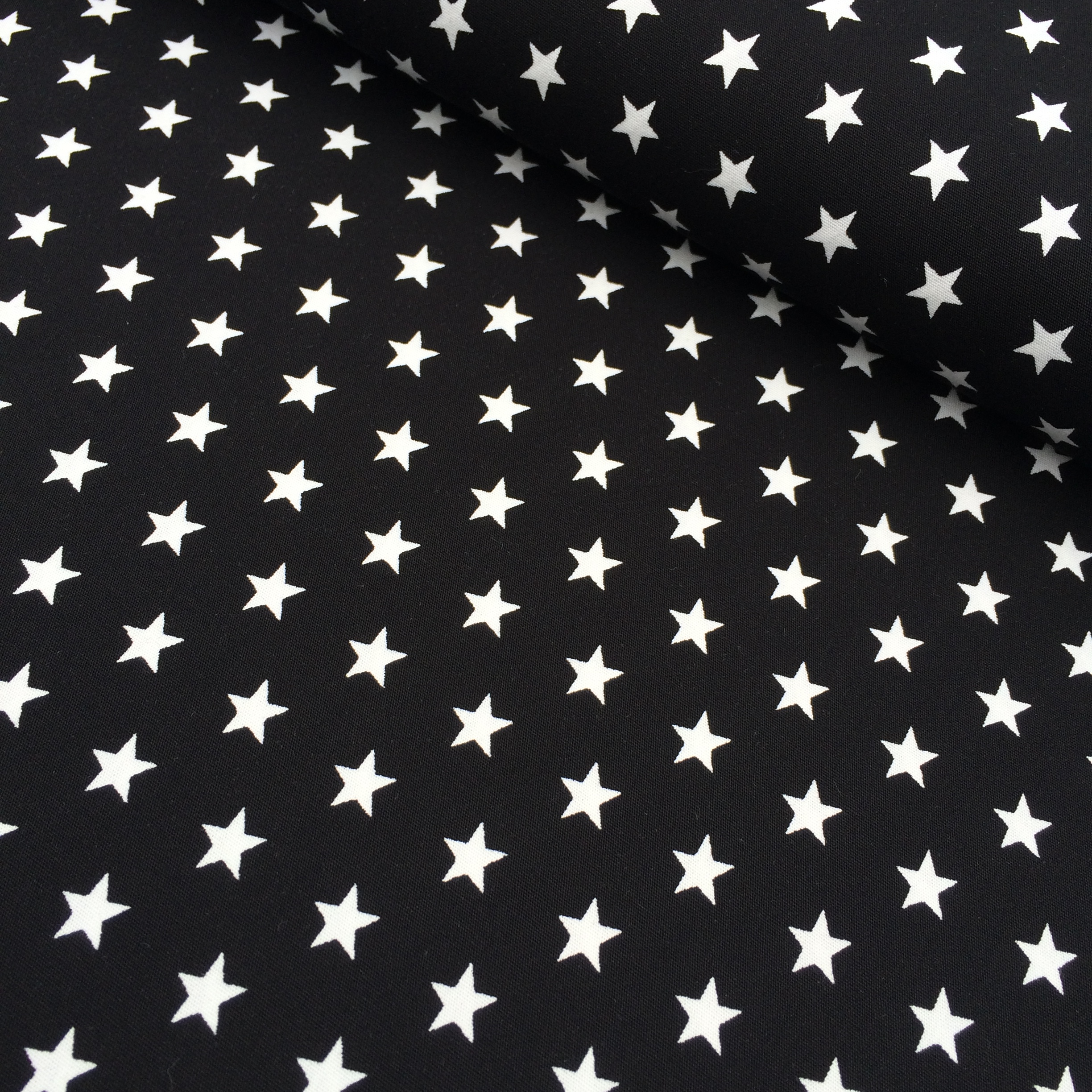 Hübsche Webware aus 100% Baumwolle in schwarz mit weißen Sternen.