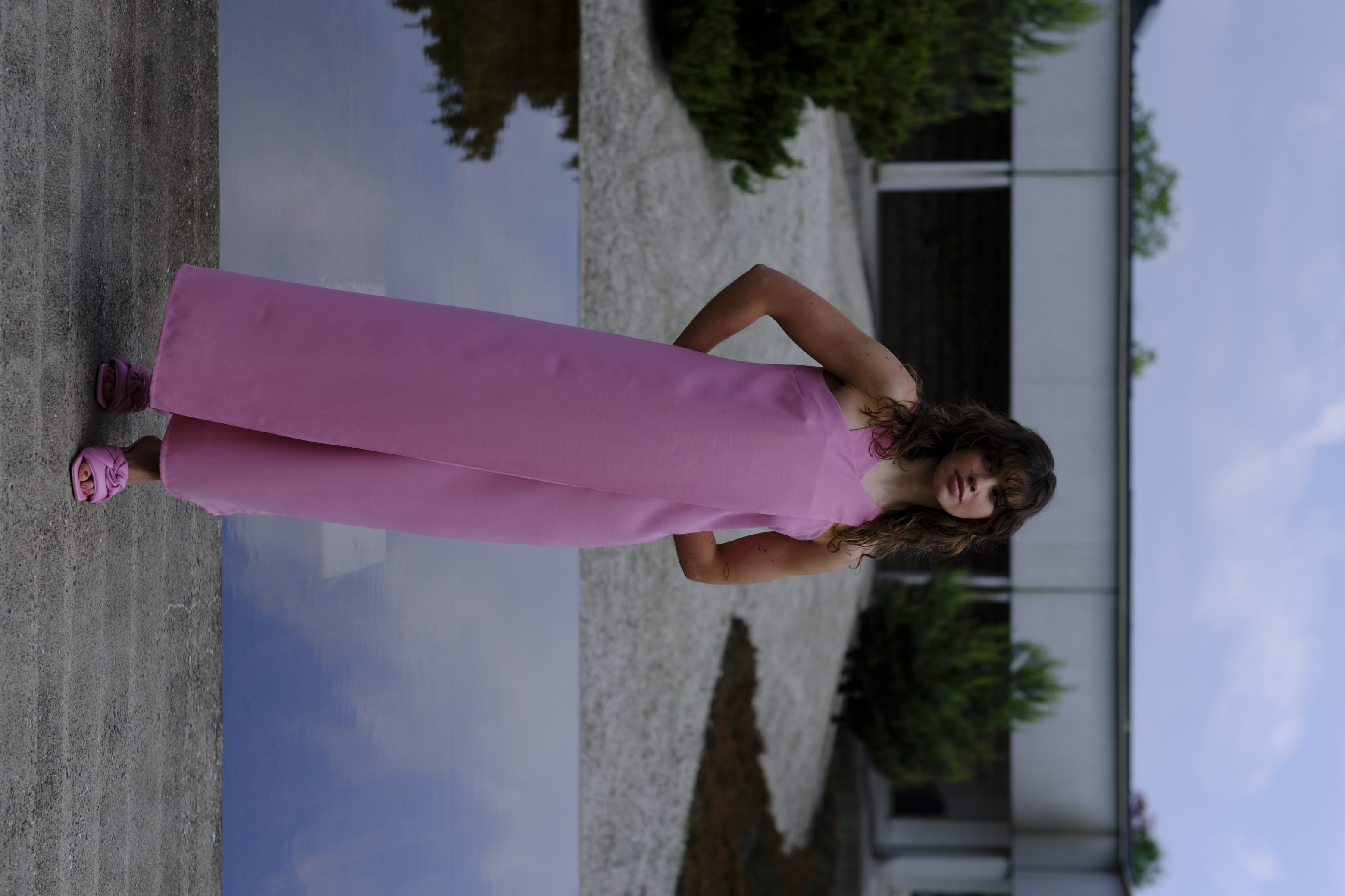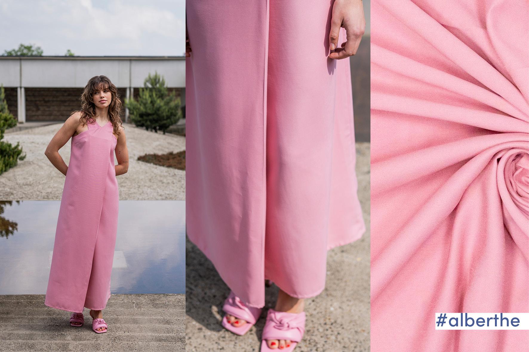 Hochwertiger Viskose Stoff in rosa. Der schöne Viskose Webstoff wurde in der Fibre Mood 29 für das Schnittmuster Alberthe vernäht. Generell eignet sich der Stoff für weite Hosen, Kleider, Tuniken und alle Schnittmuster, die auf nicht-dehnbare dünne Stoffe ausgelegt sind.