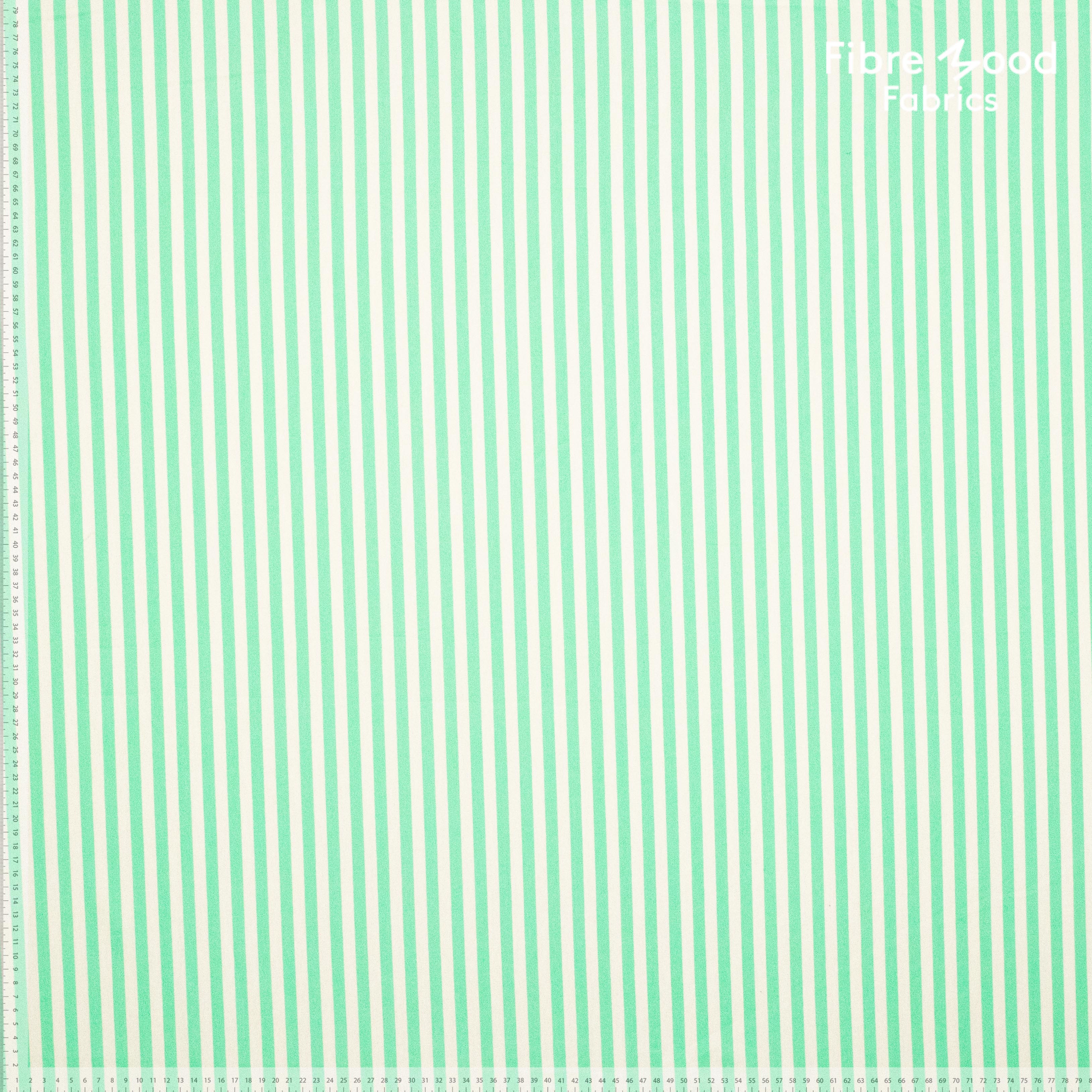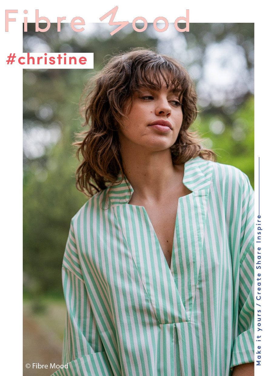 Hochwertige Baumwoll Popelin mit Streifen in grün und weiß. Der schöne Webstoff wurde in der Fibre Mood 29 für das Schnittmuster Christine vernäht. Generell eignet sich die dünne Popline für weite Kleider, Tuniken und alle Schnittmuster, die auf nicht-dehnbare dünne Stoffe ausgelegt sind.