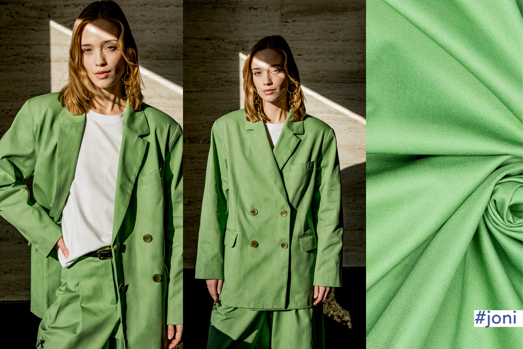 Beigefarbener gewebter Baumwollstoff, der durch das emerised-finish besonders weich im Griff ist. Der Stoff wurde für das Schnittmuster Kenza und den Schnitt Koni in der Fibre Mood Special n°3 (Ausgabe 27) verwendet und wir haben ihn auch noch in beige. Durch den leichten Stand eignet er sich hervorragend für Hosen, Jacken, Blazer und Röcke.