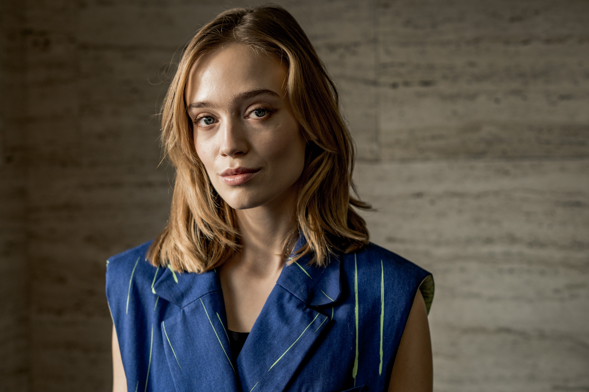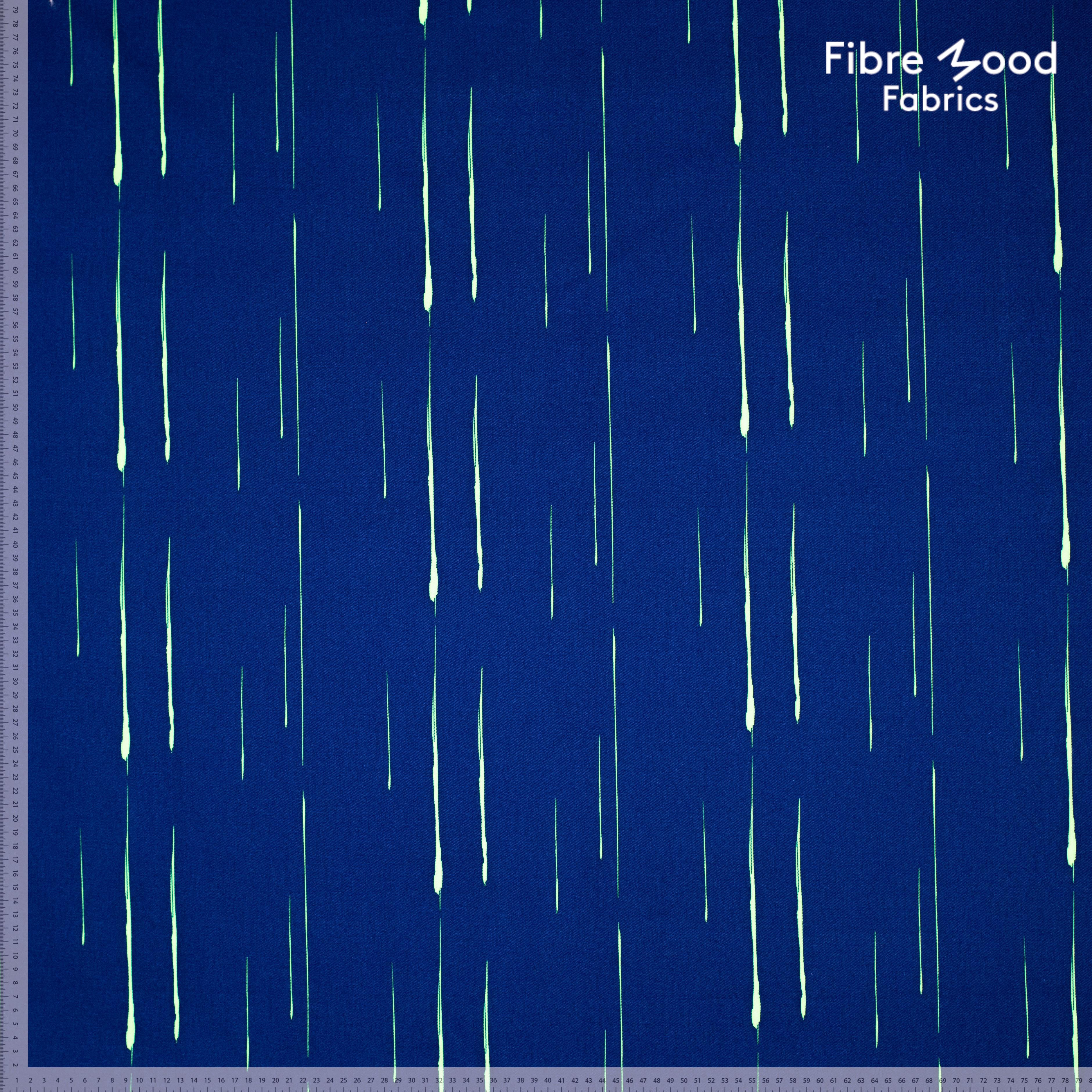Wunderbar leuchtender Baumwollstoff in blau mit grünen Pinselstrichen. Der Stoff wurde für das Schnittmuster Perla in der Fibre Mood Special n°3 verwendet. Aus dem festen Baumwollstoff kannst Du perfekte Hosen, taschen oder Jacken nähen.