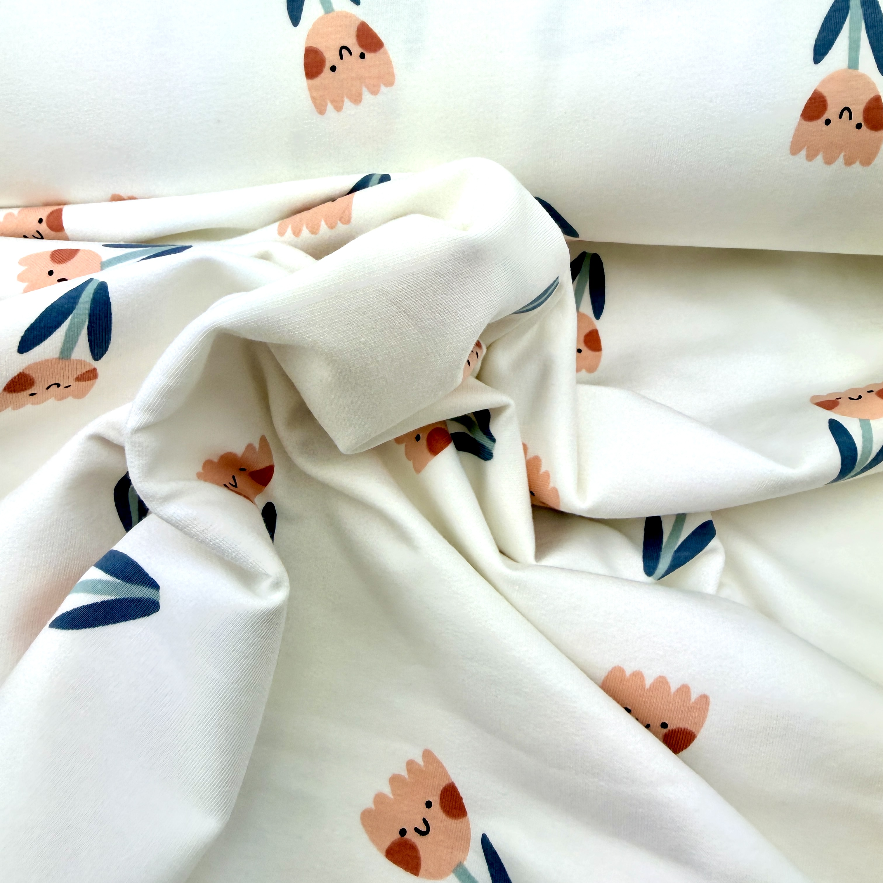Hochwertiger French Terry in ecru mit niedlichen Tulpen. Das hübsche Blumen-Design eignet sich für Kinder und für Erwachsene gleichermaßen.
