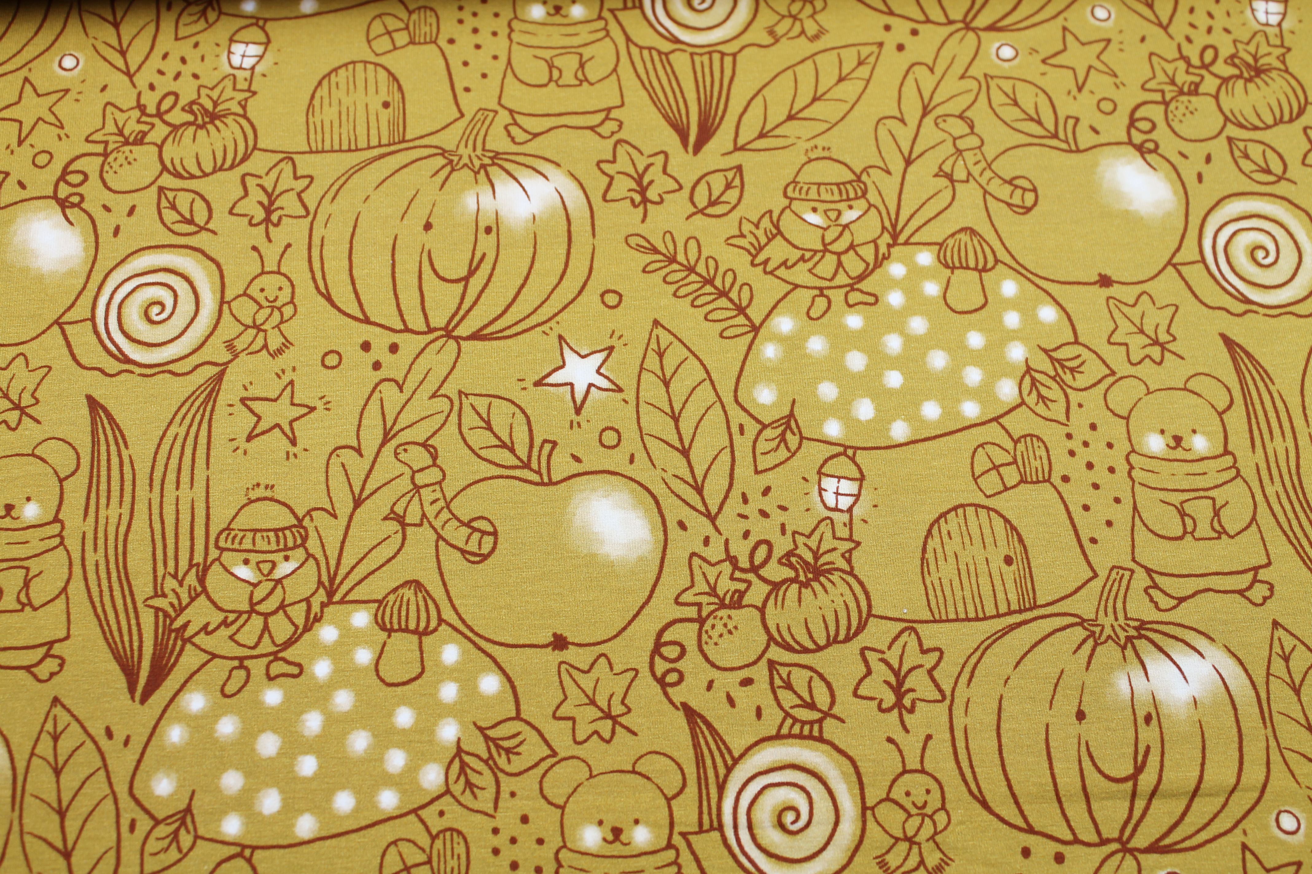 Preview: Hilco Jersey "Apple Outline" ocker Waldtiere