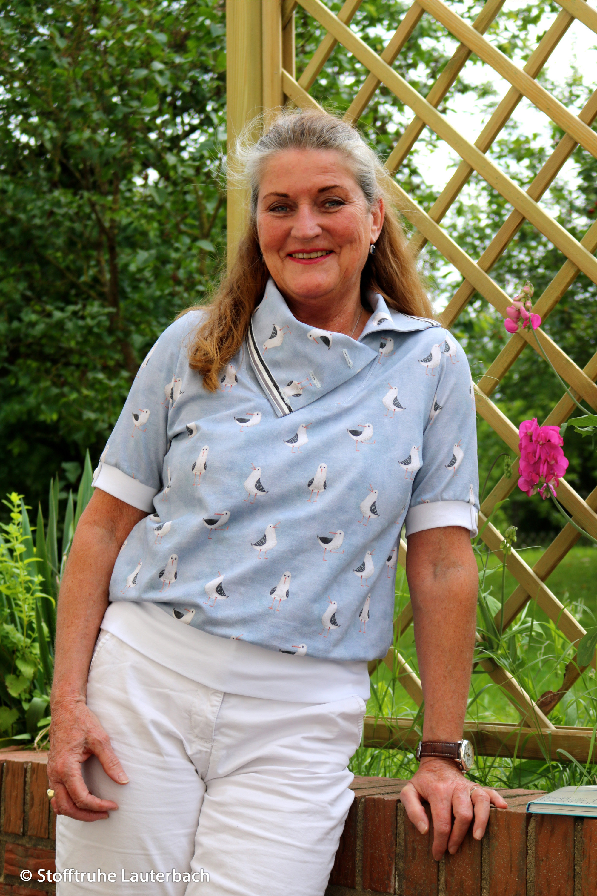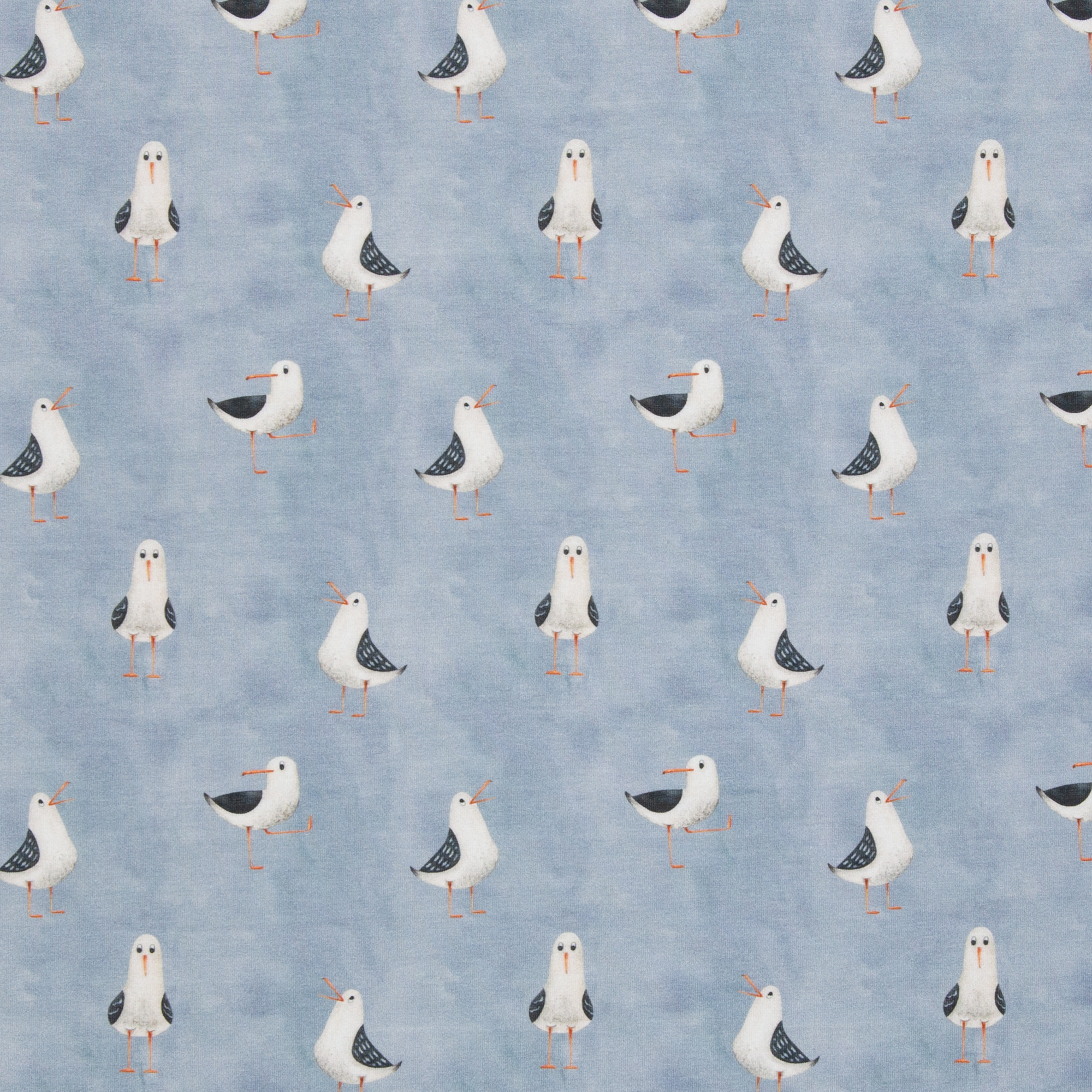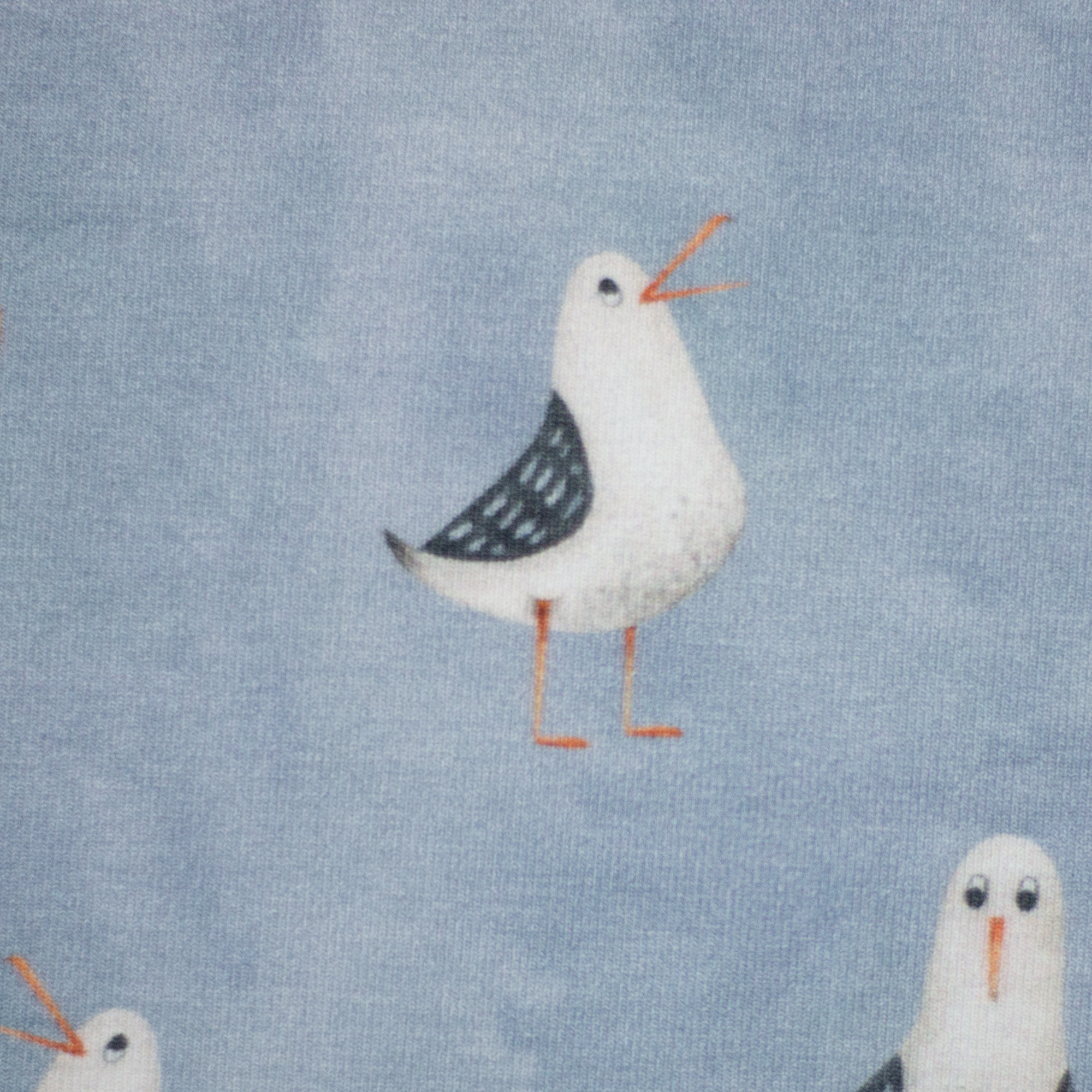 Hochwertiger Baumwolljersey aus der Swafing Sommerkollektion 2025. Der Hintergrund ist blau meliert und als Motiv hat der Stoff Möwen. Material: 95% Baumwolle, 5% Elasthan Breite: 150cm Gewicht: 200gr/m² Ökotex 100 Standard