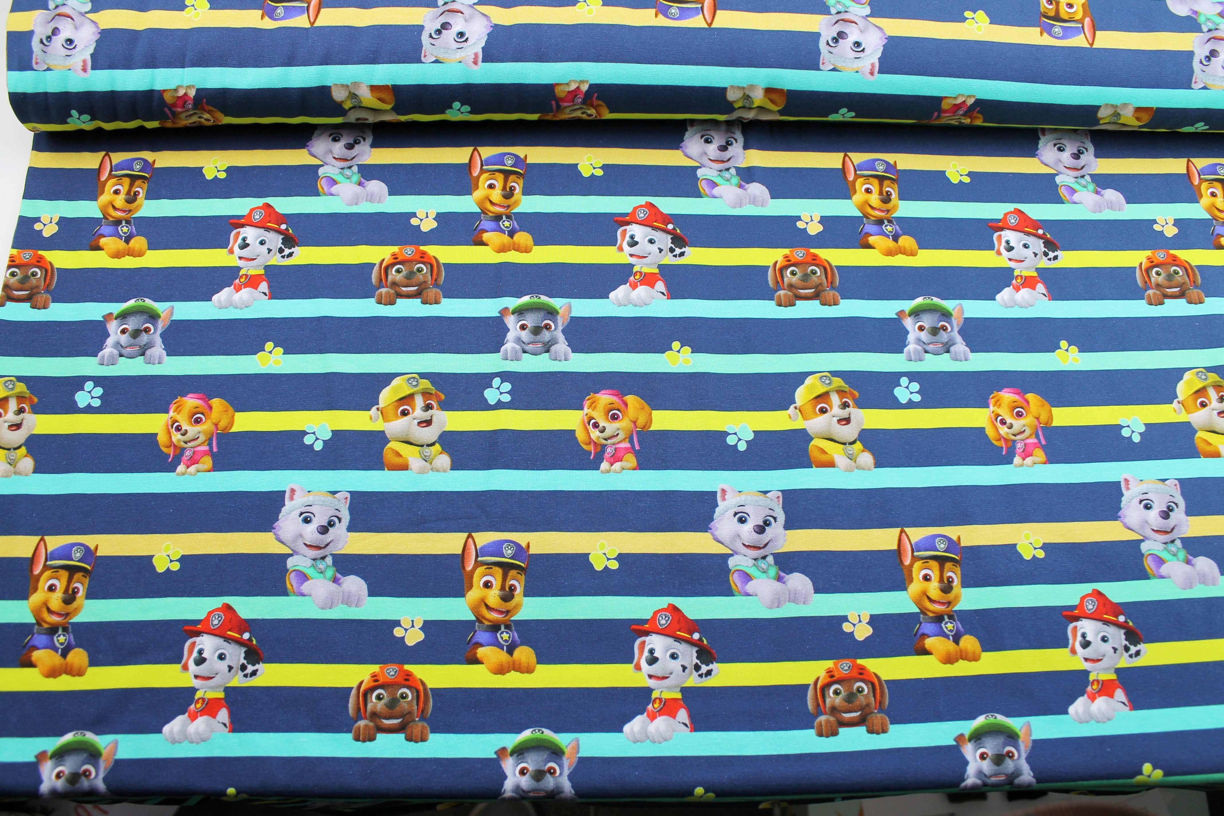 Niedlicher Baumwolljersey mit den Hunden der Paw Patrol. Bei dem Jersey handelt es sich um ein Lizenzprodukt, dass nur zu privaten Zwecken genutzt werden darf. Es ist nicht erlaubt daraus genähte Stücke zu verkaufen.