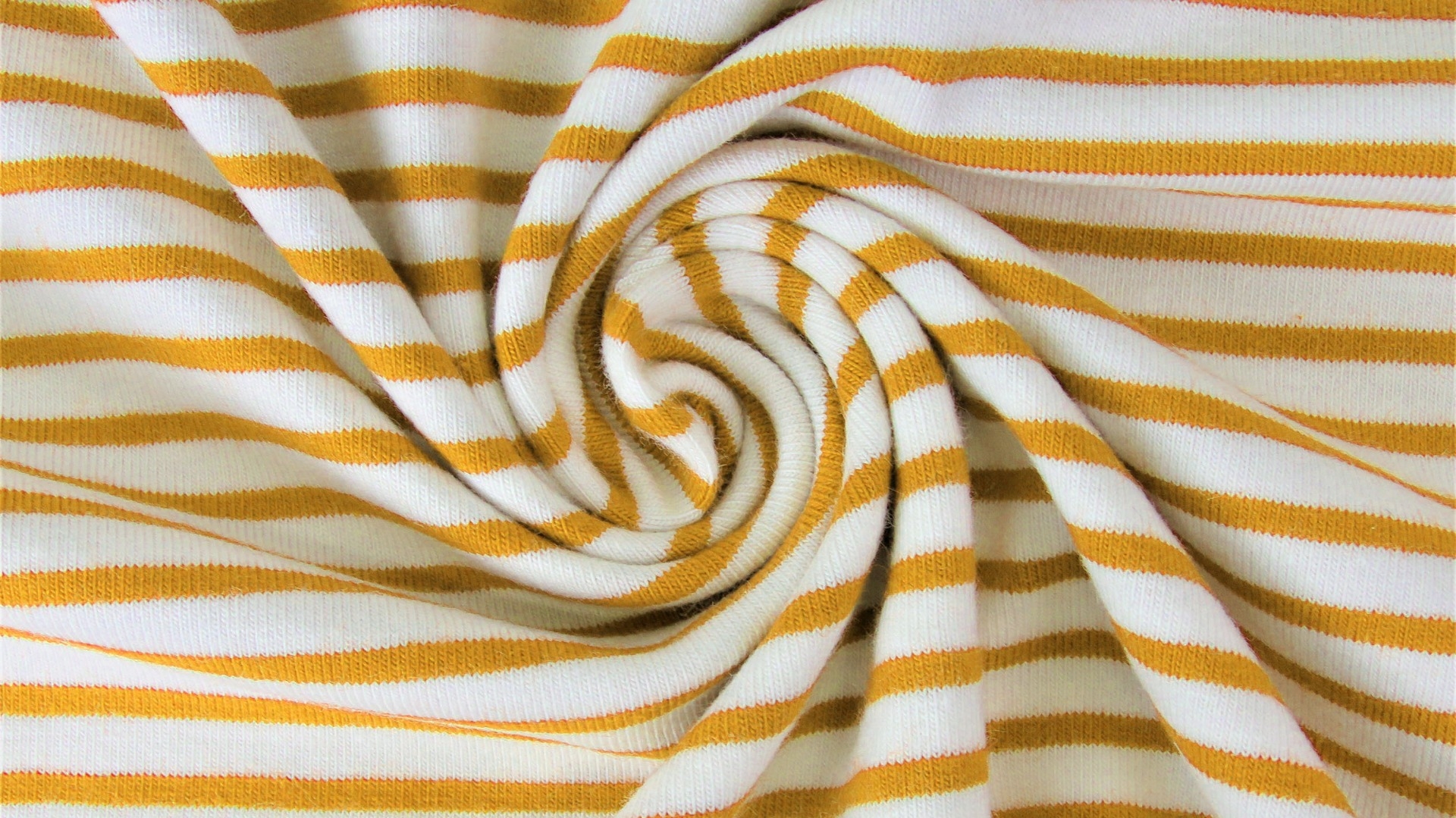 Hochwertiger, weicher Baumwolljersey mit schmalen Streifen in weiß und ocker.