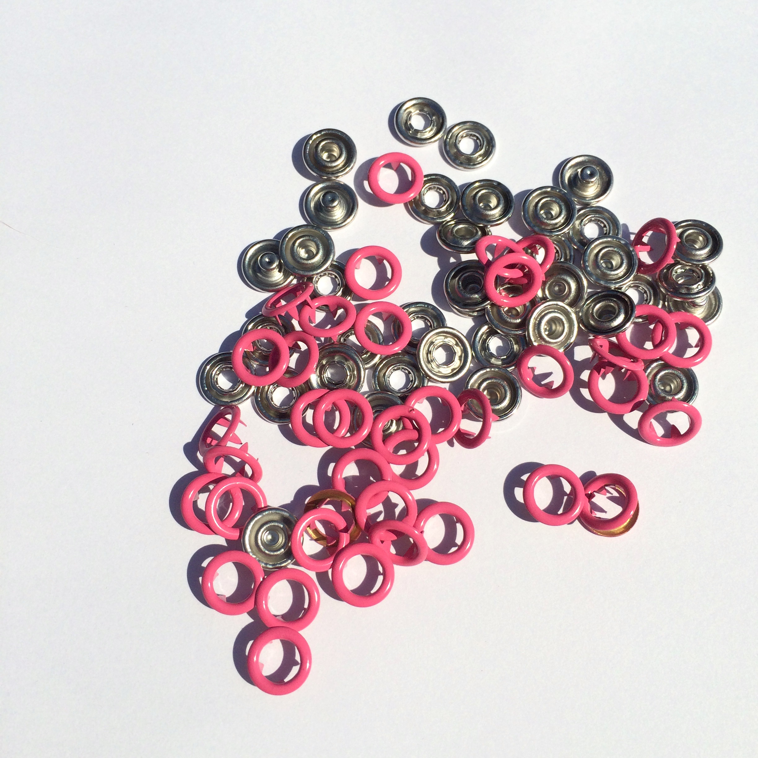 Jeder Knopf besteht aus 4 Teilen! Die Knöpfe lassen sich einfach mit der Prym Vario Zange montieren und eignen sich für Stoffe mit einer Dicke von maximal 1,5mm.