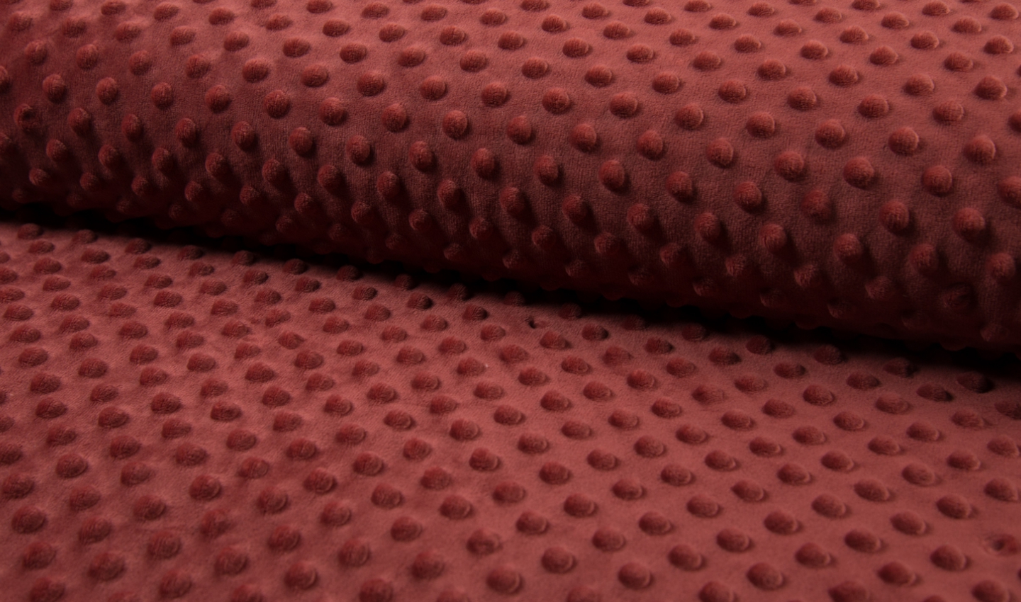 Kuschelig weiches Microfleece in terra mit Noppen. Minky kann zum Nähen von Kleidung, zum Füttern von Mützen oder ganz einfach gesäumt als Kuscheldecke verwendet werden.