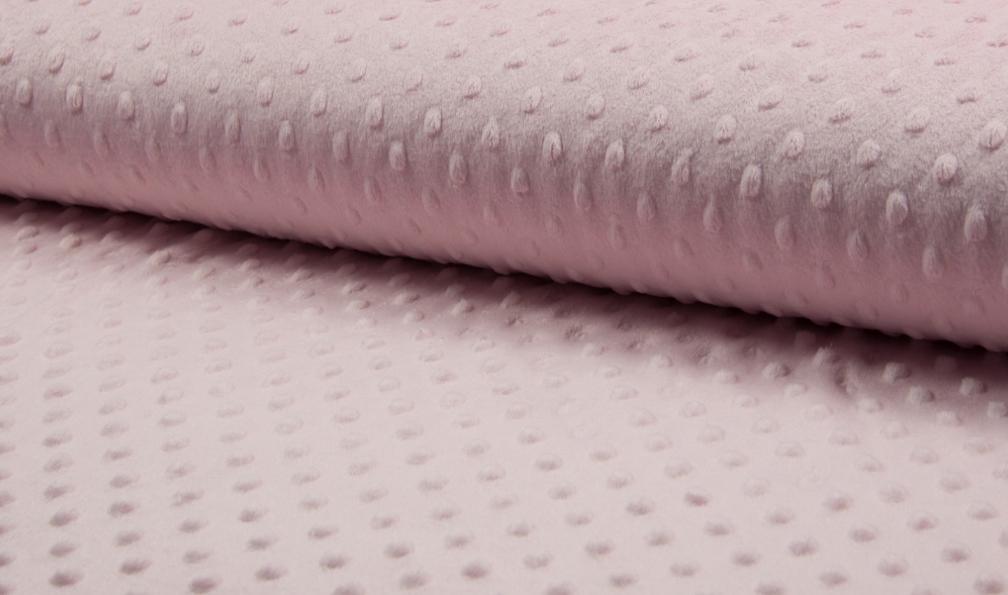 Kuschelig weiches Microfleece in rosa mit Noppen. Minky kann zum Nähen von Kleidung, zum Füttern von Mützen oder ganz einfach gesäumt als Kuscheldecke verwendet werden.