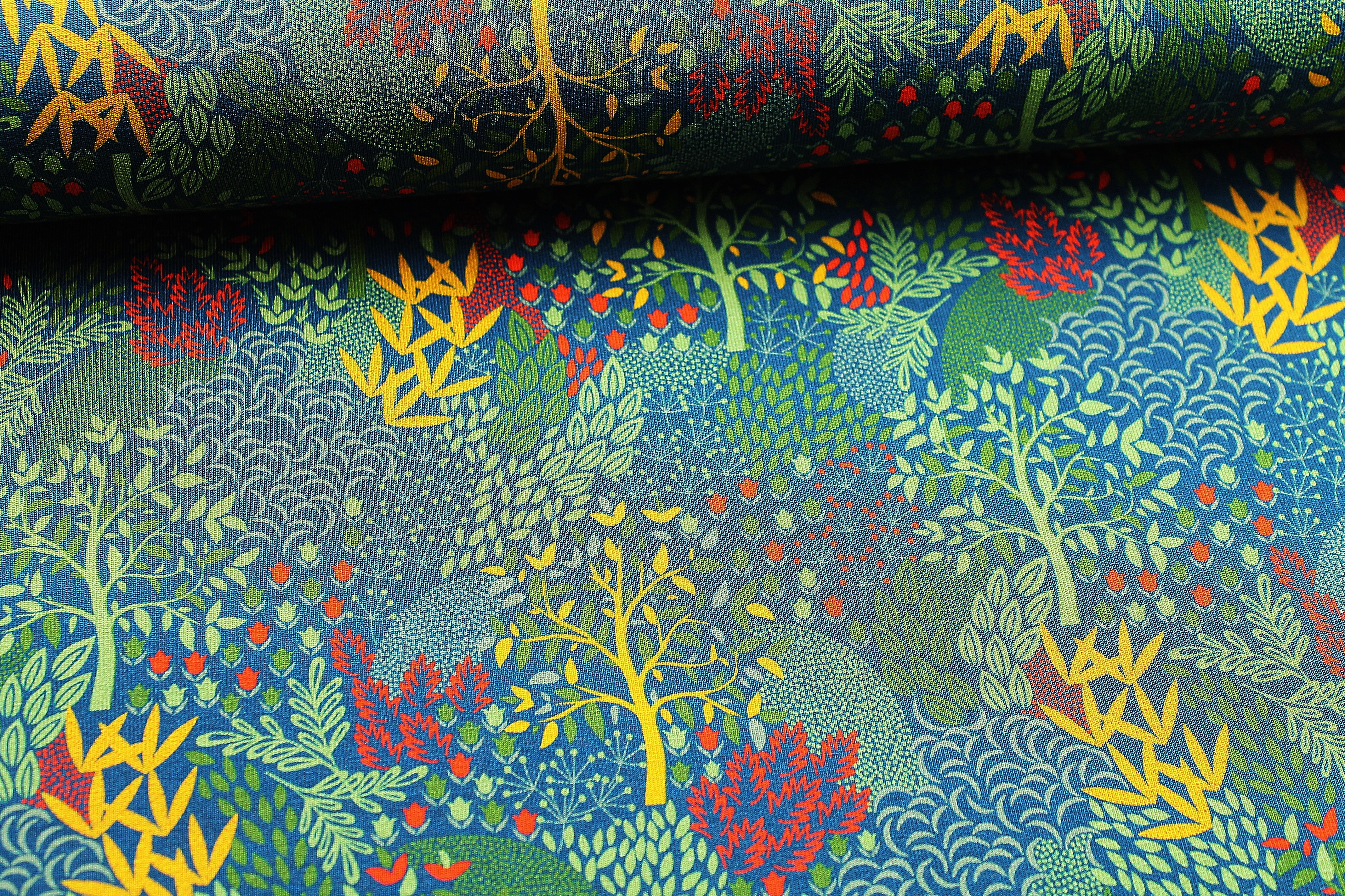 Angenehmer und leichter Sweat von Swafing. Durch sein tolles Walddesign, der perfekte Stoff für Pullover und andere Oberbekleidungen. Material: 60% Baumwolle, 35% Modal, 5% Elasthan Breite : 150 cm Gewicht: ca. 265 g/m² Ökotex Standard 100