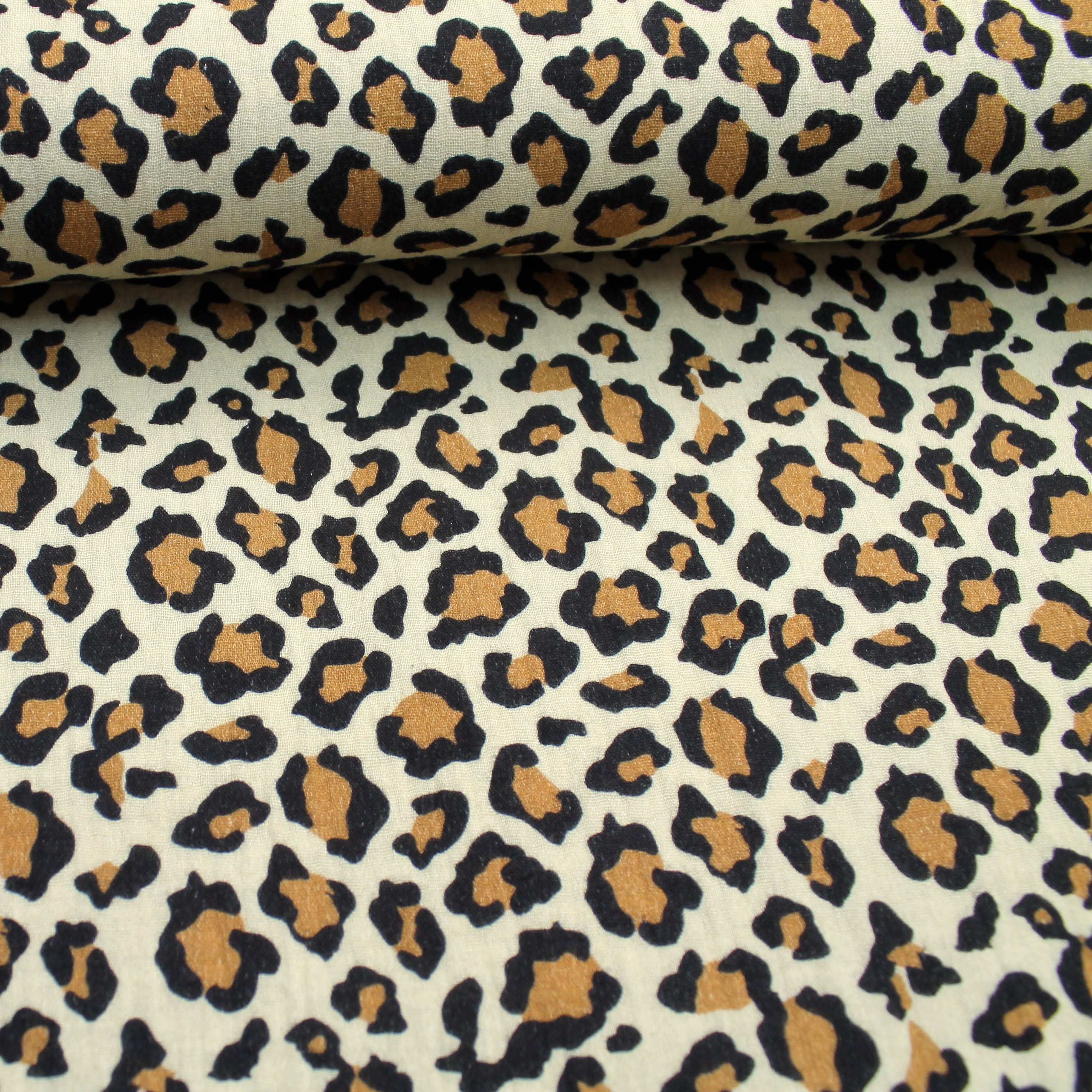 Beigefarbener Musselin mit kleinem Leo-Muster. Der schlichte Jersey ist perfekt um Musselintücher daraus zu nähen. Material: 100% Baumwolle Breite: 140cm Gewicht: 130g/m² Oeko-Tex Standard 100