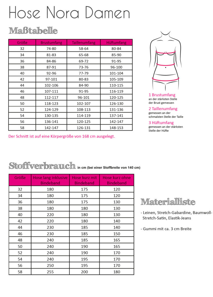 Nora ist eine lässige Hose, die du dir mit angesagtem Paperbag-Bund und passendem Gürtel nähen kannst. Ob beim Business-Meeting oder auf der Shopping-Tour: Mit deiner neuen Hose bist du immer genau richtig angezogen. Natürlich kannst du Nora auch mit einem normalen Bund nähen und hast außerdem die Wahl zwischen verschiedenen Hosenlängen.