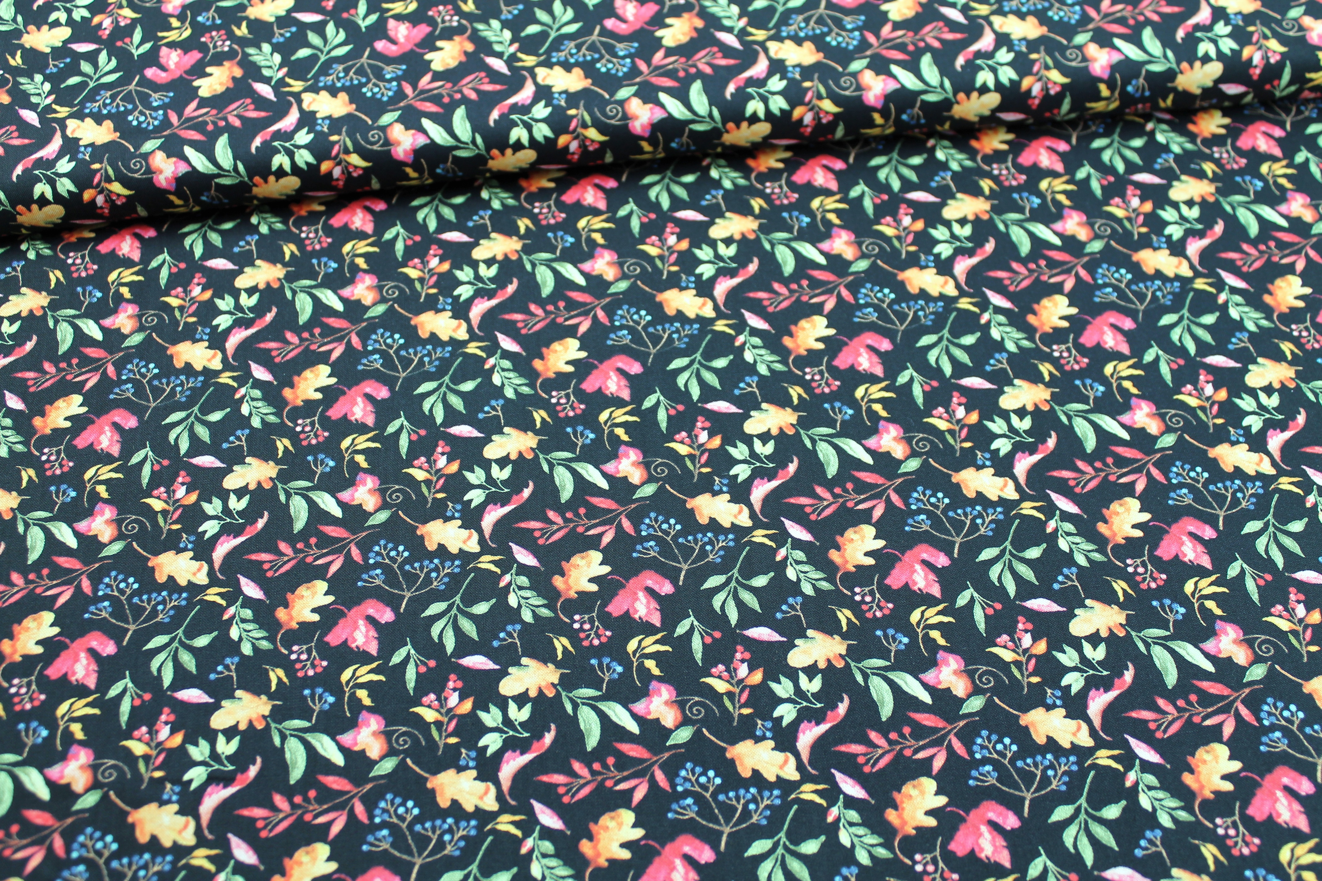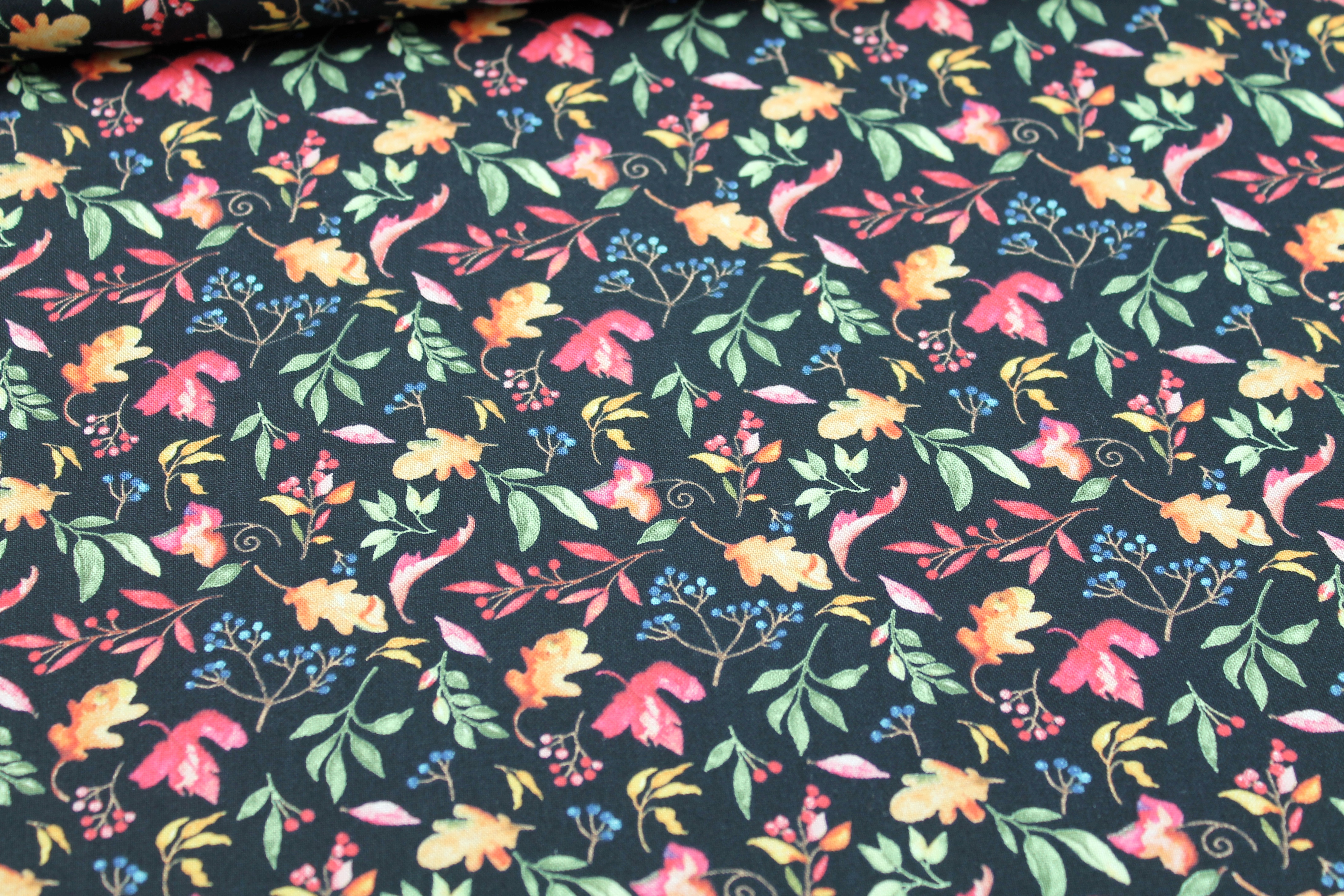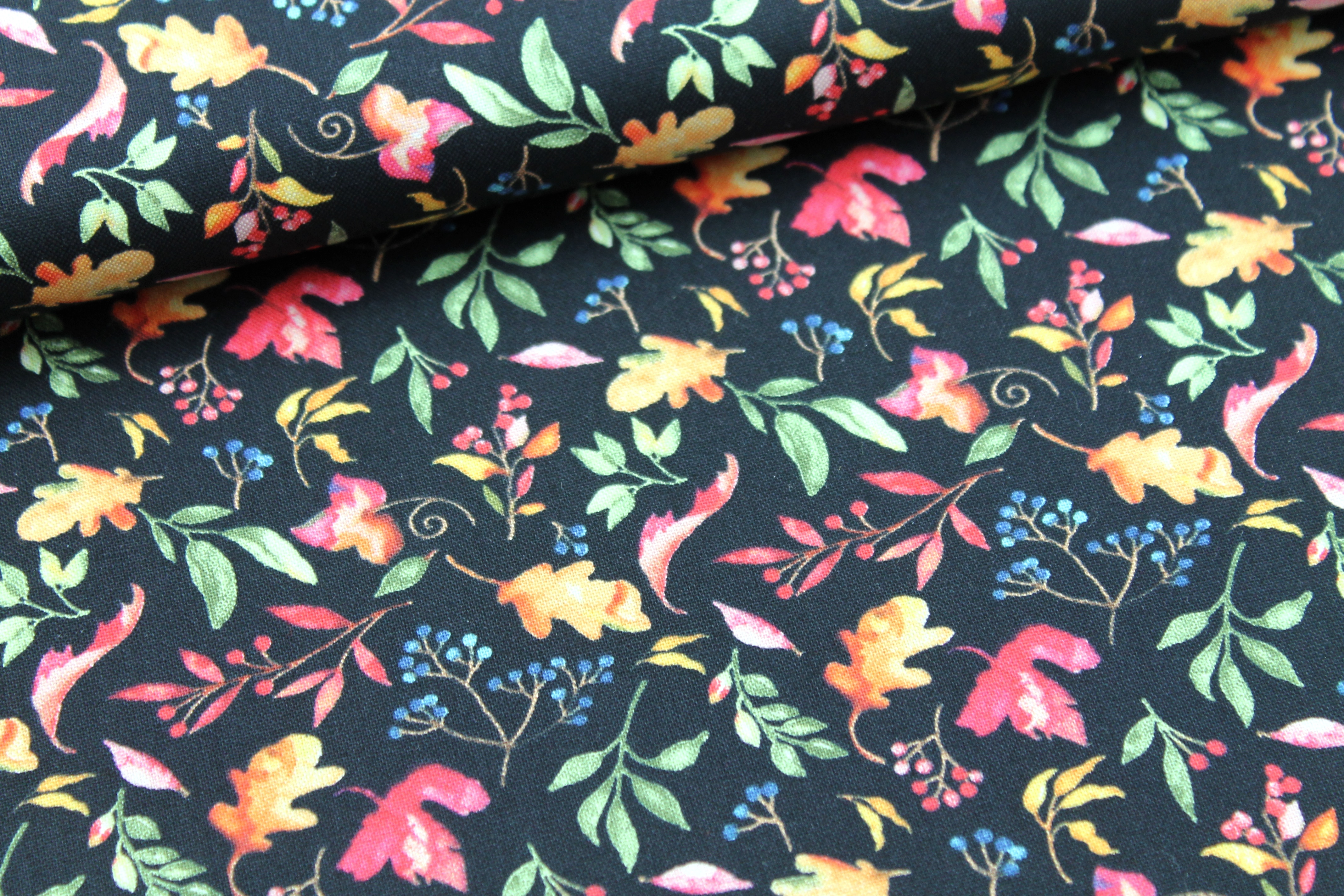 Patchworkbaumwolle „Autumn Day“ Blätter schwarz by Nancy Mink