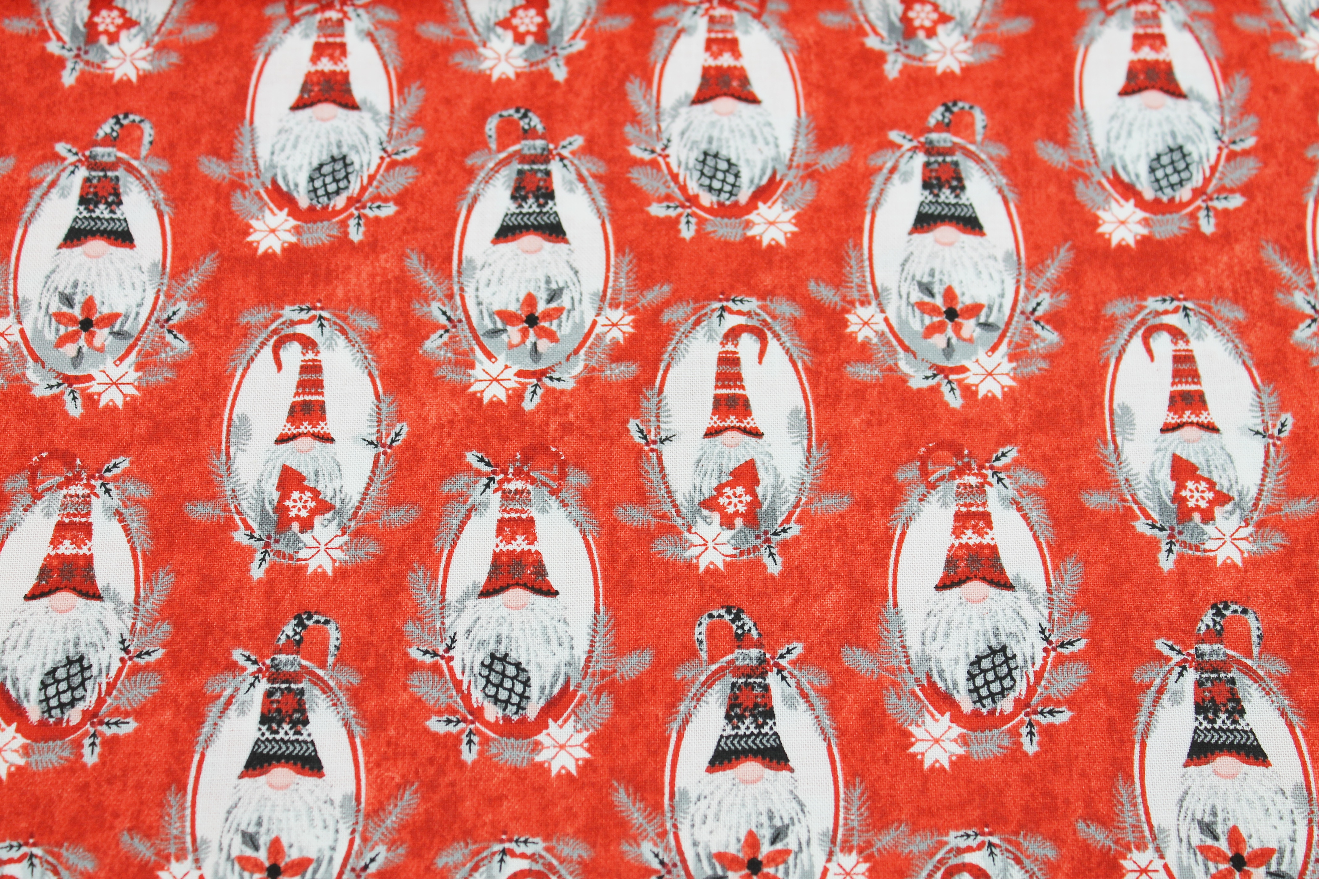 Patchworkbaumwolle „Hanging with my Gnomies" Wichtelweihnachten rot