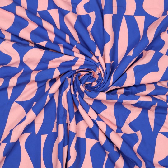 Poplin leichte Webware  "Abstract" blau, rosa für Blusen und Kleider