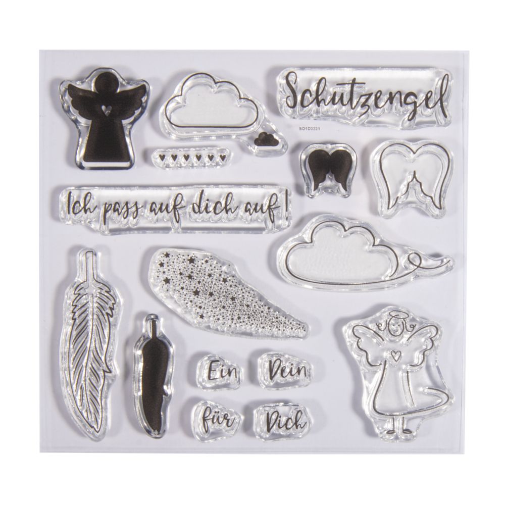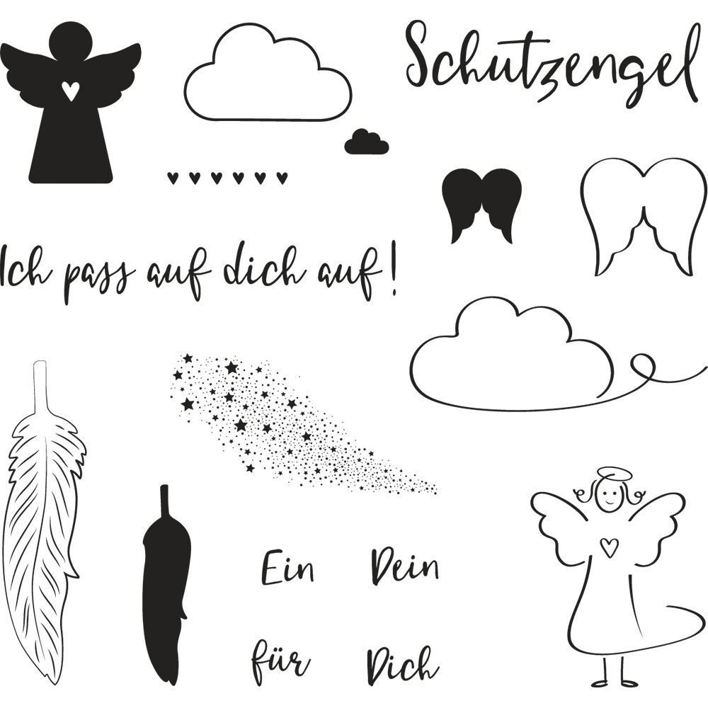 Clear Stamps „Schutzengel“, Bogengröße 102,5 x 97 mm, 16 verschiedene Motive und Texte