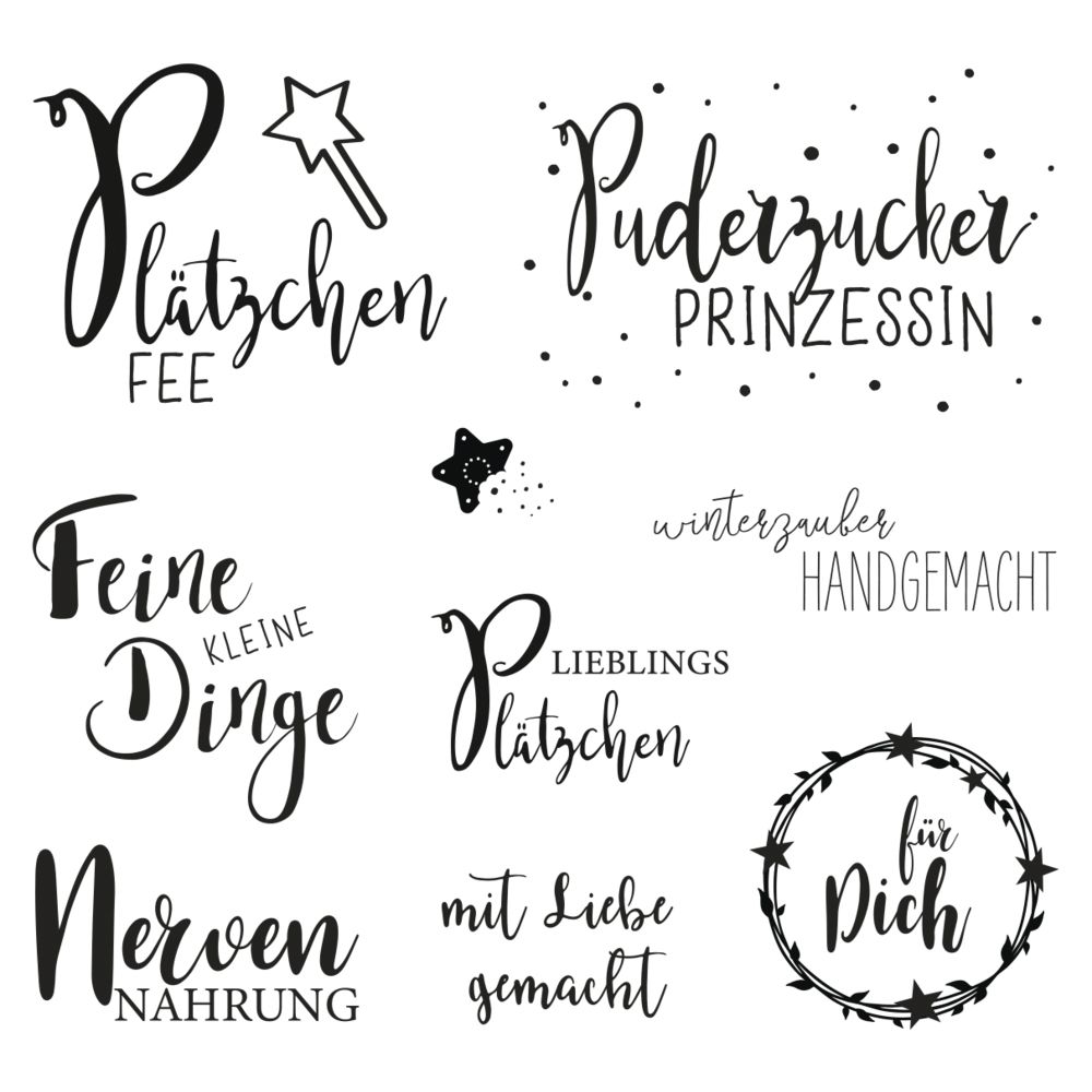 Motivgrößen: z.B. größtes Motiv “Puderzucker Prinzessin” ca. 5,2 x 3,5 cm, kleinstes Motiv „Stern“ ca. 1,3 x 1 cm