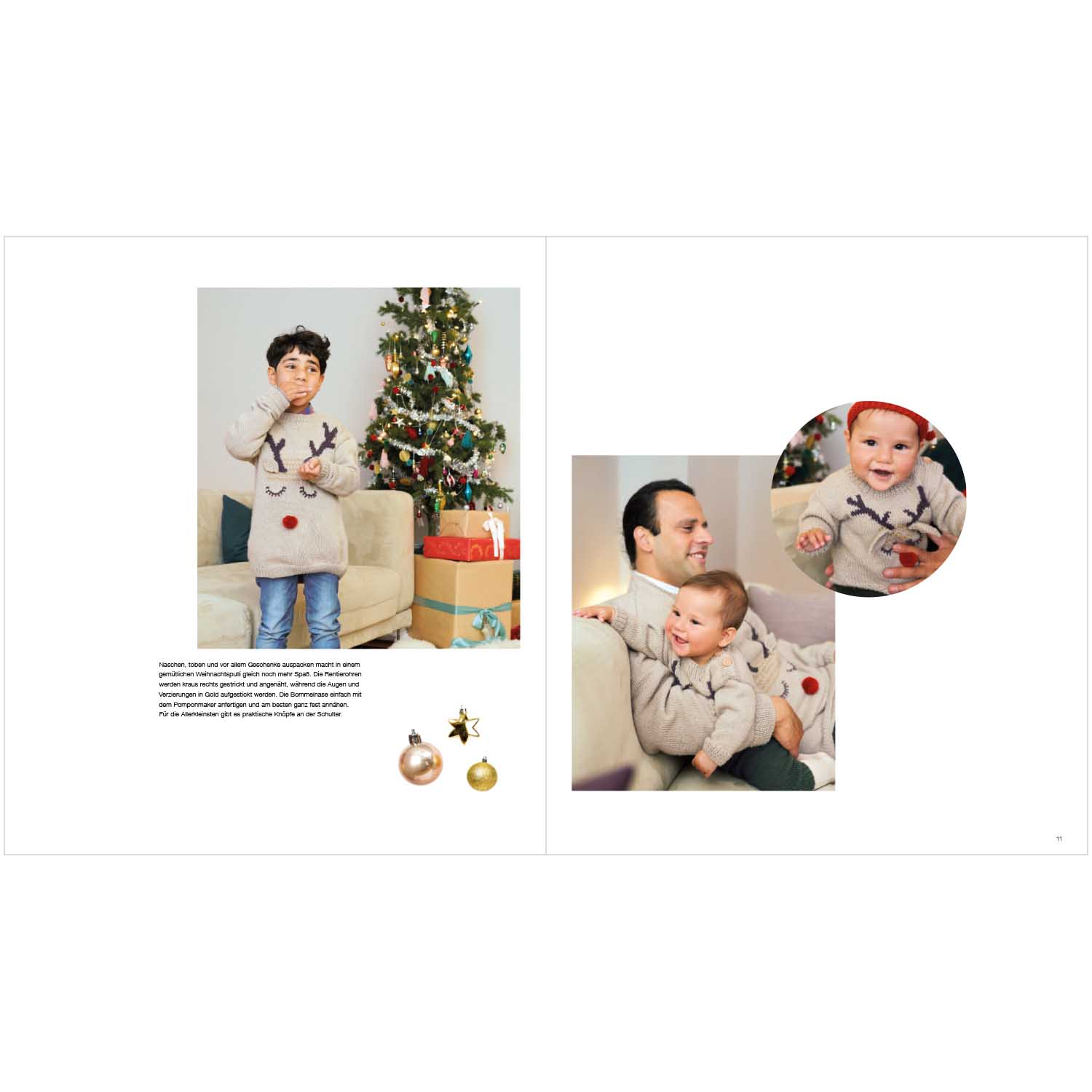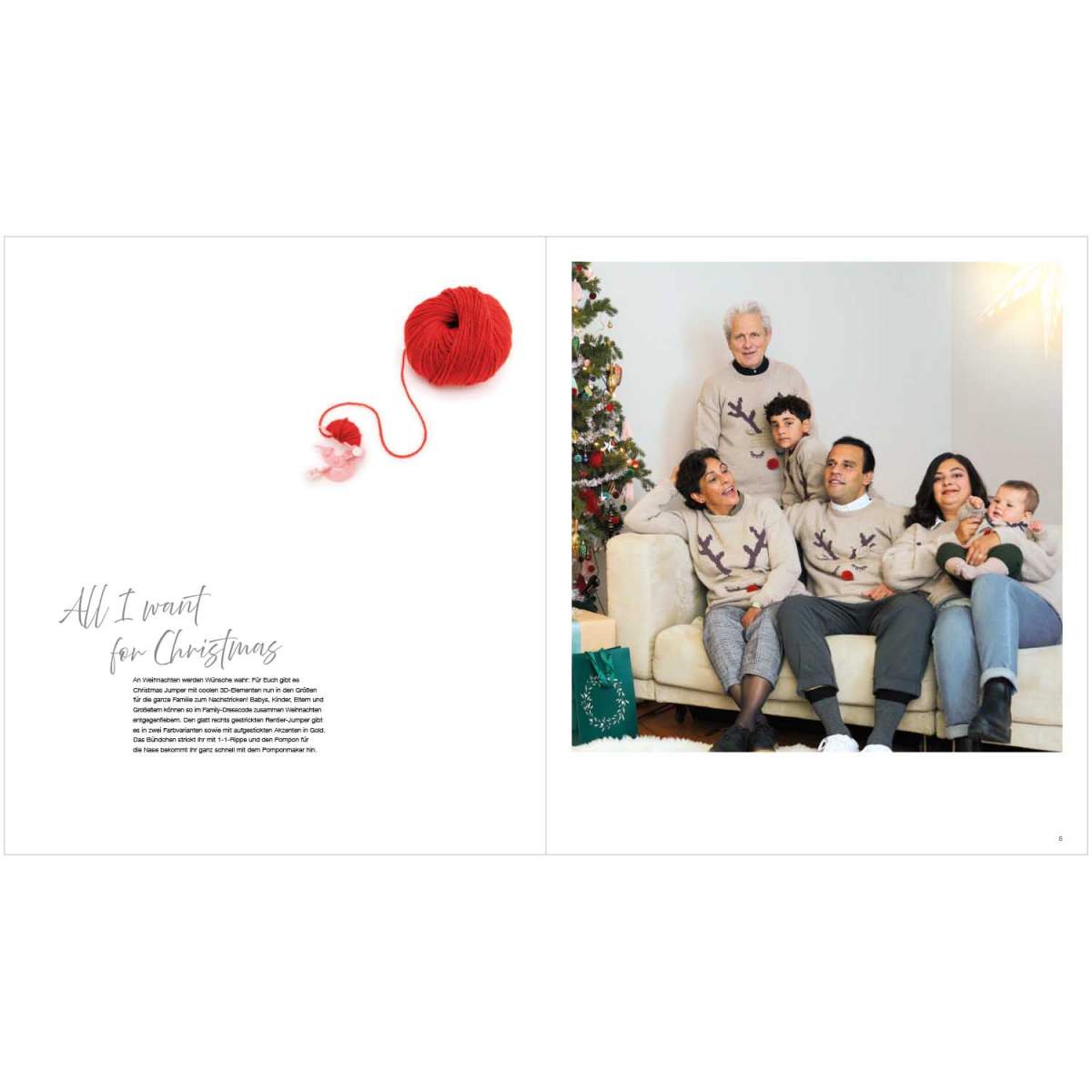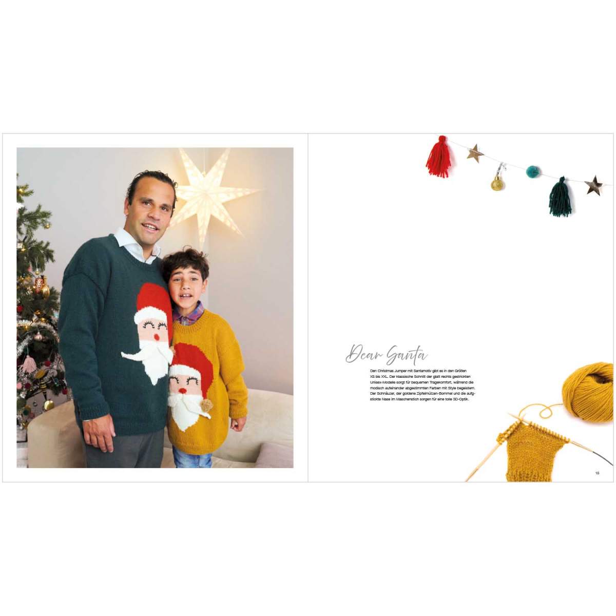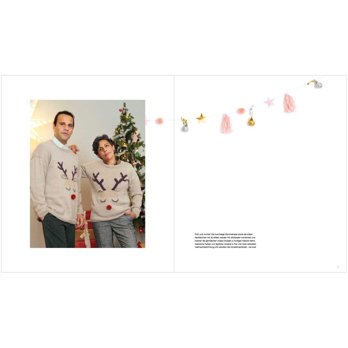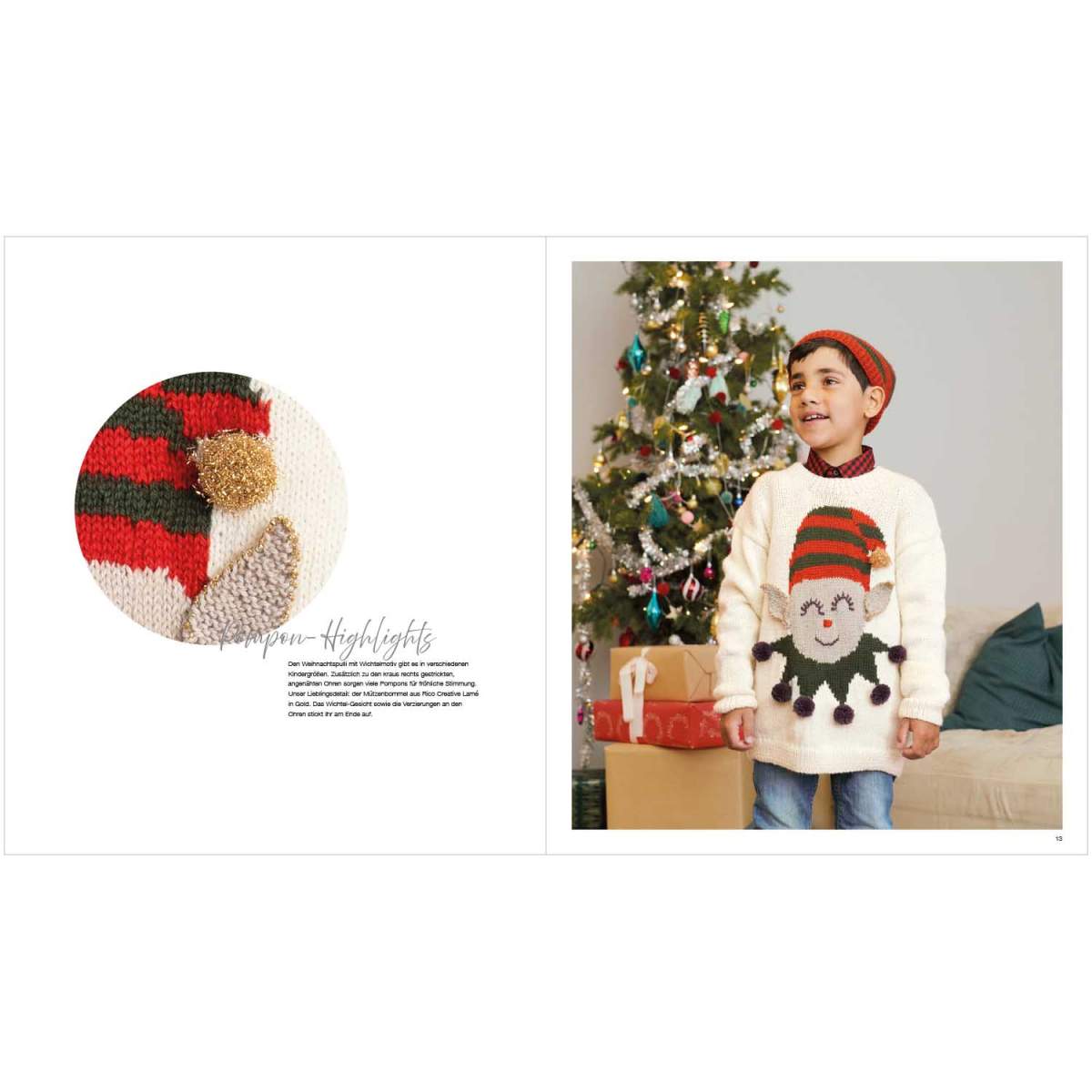 Die Publikation Christmas Jumper präsentiert klassische Weihnachtspullover aus dem bewährten Rico Garn Essentials Merino Plus dk für die ganze Familie. Ob Damen, Herren, Kinder oder Babys – für jeden ist etwas dabei. Neben stylishen Christmas Jumpern mit Nikoläusen und Rentieren finden sich zum Beispiel ein niedliches Elfkostüm für die Minis oder eine Nikolausmütze. Für den Rentier-Pullover gibt es eine Anleitung für alle Größen (Babys, Kinder, Damen, Herren). Alle Modelle punkten mit verspielten dreidimensionalen Details, wie Pompons, Kragen und Co.