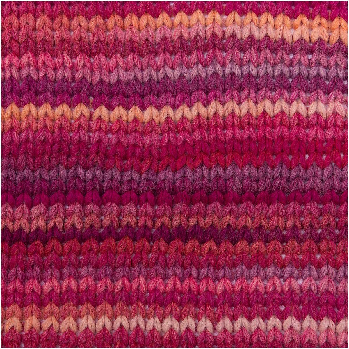 Der voluminös gestickte Faden der Print-Schurwollmischung Creative Smile ist extra fluffig und luftig. Die tollen Farben überzeugen mit bunten, aber ausgesprochen stimmigen Farbverläufen. Verstrickt ergibt der Faden eine angesagte Streifenoptik.