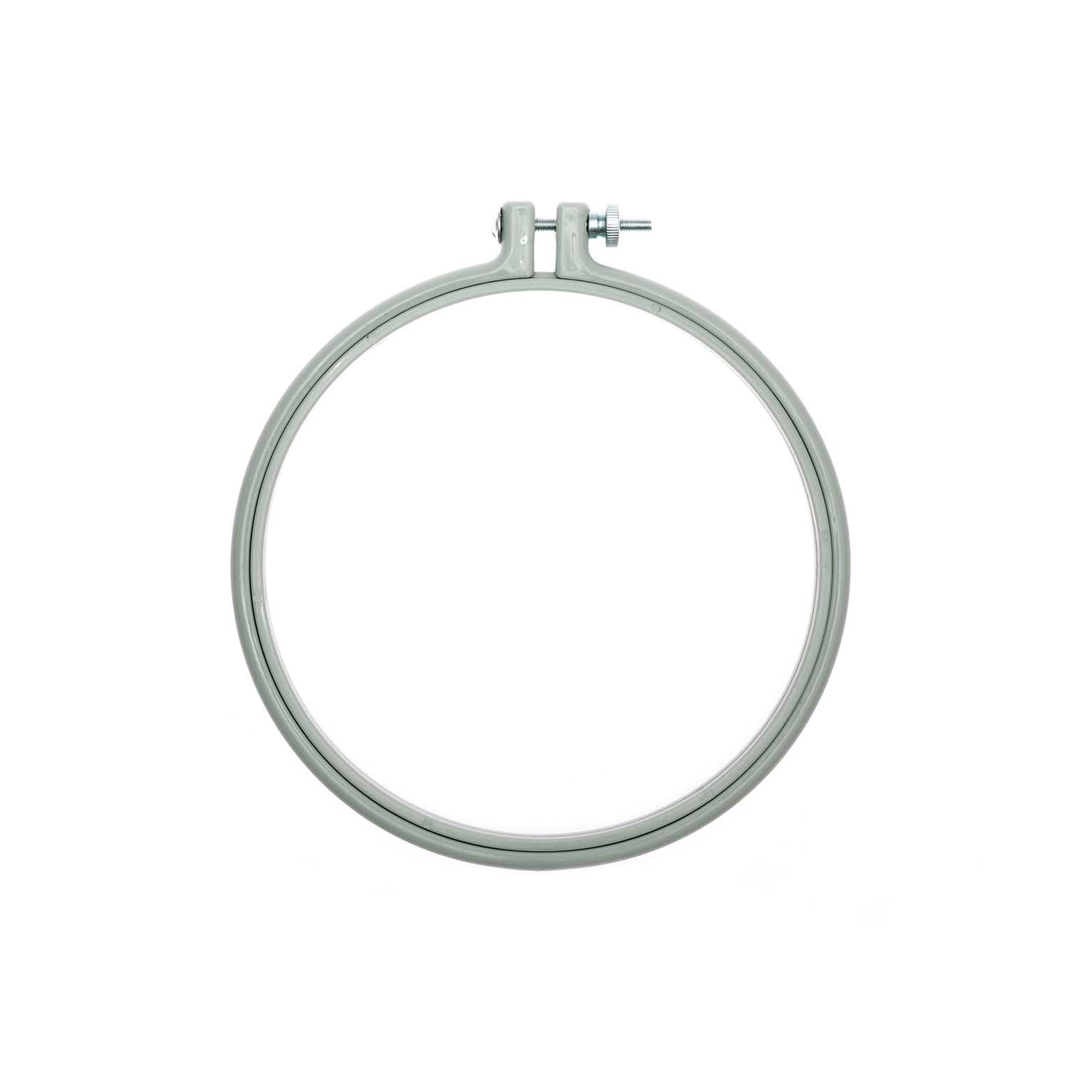 Mit seinem besonders festen Halt garantiert der Stickring grenzenloses Stickvergnügen! Der Ring ist von innen genutet. Das heißt, dass der Innenring rundum mit einer schmalen Verdickung versehen ist, die in die Rille vom Außenring „einrastet“. Dadurch haben die Stickgründe festen Halt und verrutschen nicht. Das Einspannen funktioniert ganz leicht, wenn die Metallschraube komplett gelöst wird: einfach den Außenring um den Innenring legen und die Schraube danach wieder befestigen.
