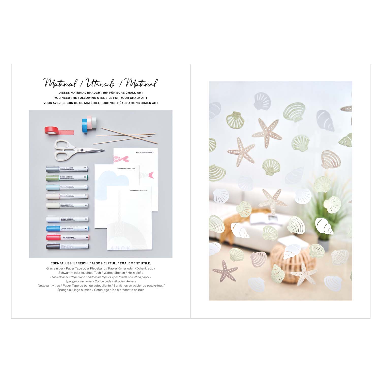 Die Rico Design Window Chalk Art Vorlagenmappen liefern neben einer Anleitung für die kreative Gestaltung von Fenstern mit Tafelmarkern ein stylisches Design und tolle Inspirationen! Die Vorlagenbögen mit maritimen Häusern, Möwen, Muscheln, Fischen, Gräsern und Leuchtturm bringen sofort Urlaubsfeeling in jeden Raum. Die beiliegende Anleitung zeigt Step by Step Erklärungen und Inspirationen zur Anwendung für viele kreative Gestaltungsmöglichkeiten mit Chalk Markern. Sie finden in der Mappe drei Vorlagen in der praktischen Größe 86,4 x 60,7 cm. Kleben Sie die Vorlage als Ganzes hinter die Fensterscheibe oder schneiden Sie Ihr Lieblingsmotiv aus und befestigen Sie es zum Nachmalen an der Scheibe. Im Handumdrehen entstehen so stimmungsvolle Fensterdekorationen.