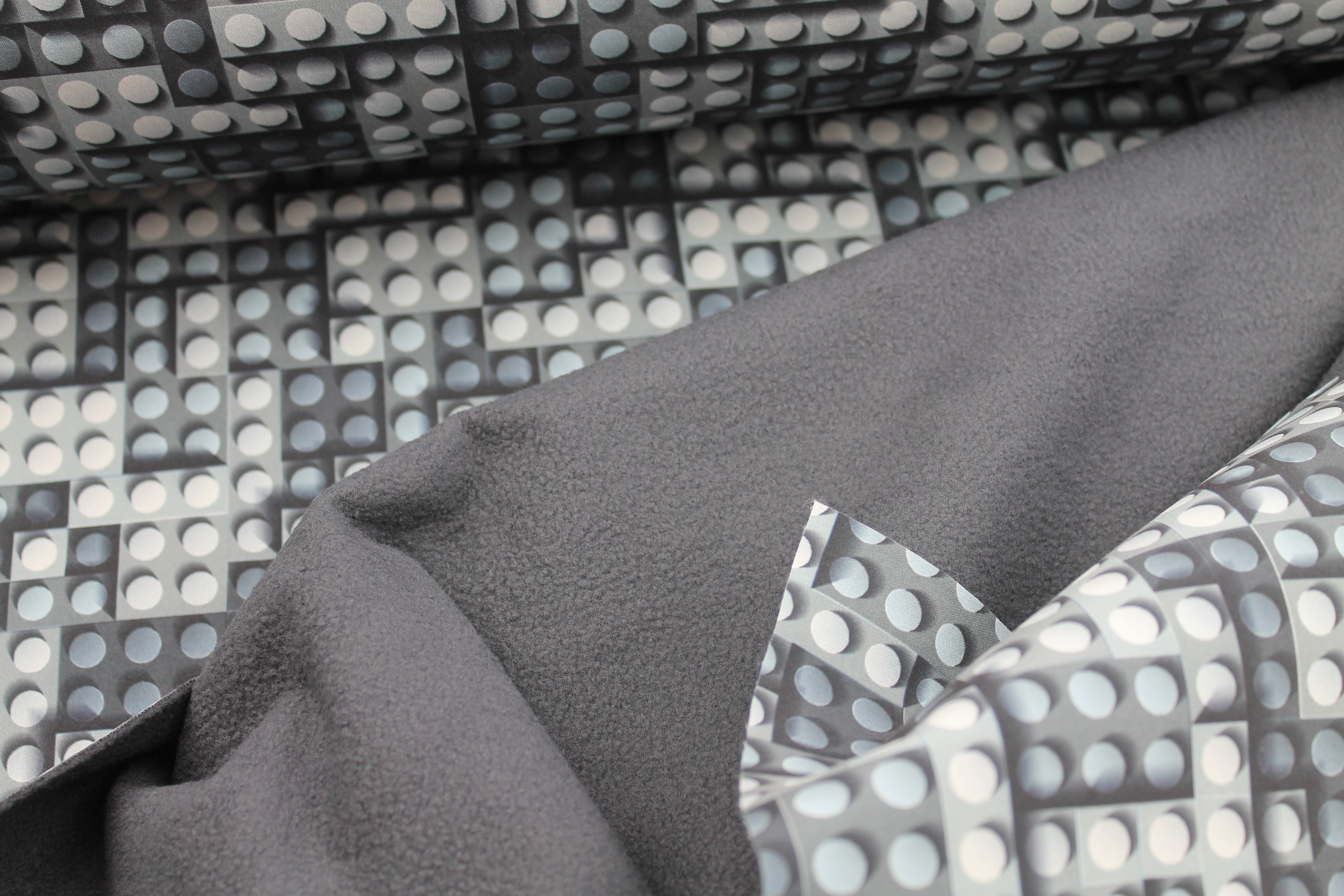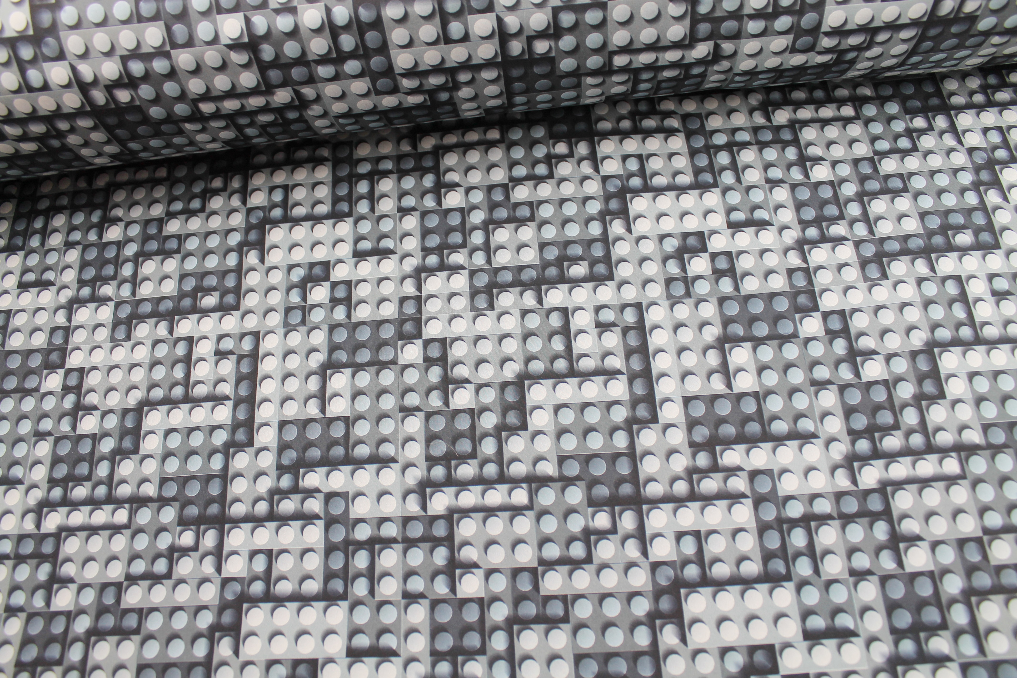 Softshell mit Bausteinen in verschiedenen Grautönen.