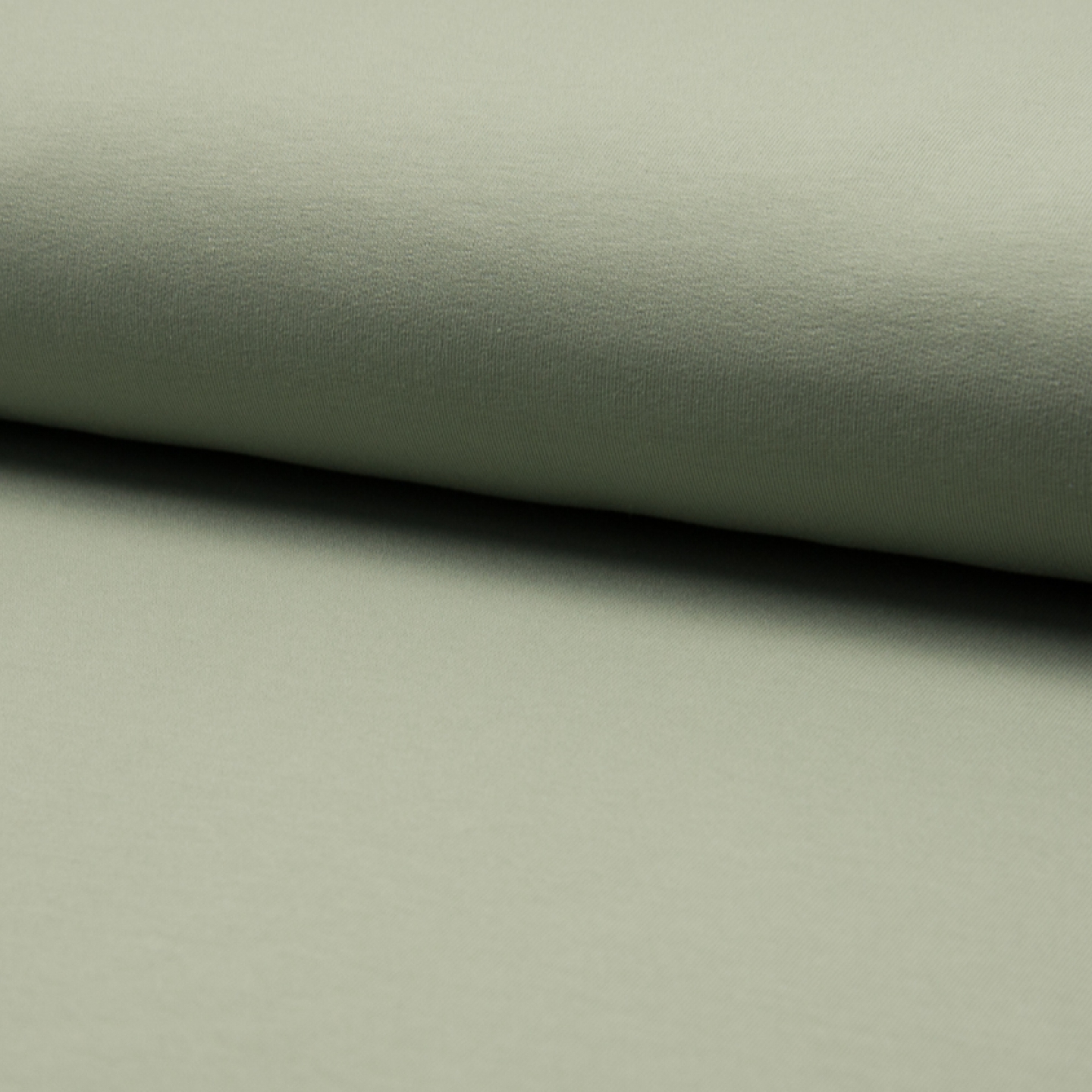 Hohwertiger Sommersweat in hellem khaki. Die Rückseite des Stoffes ist nicht angeraut! Der SommerSweat eignet sich hervorragend zum Nähen von Kleidern, Hosen, Oberteilen und Westen.
