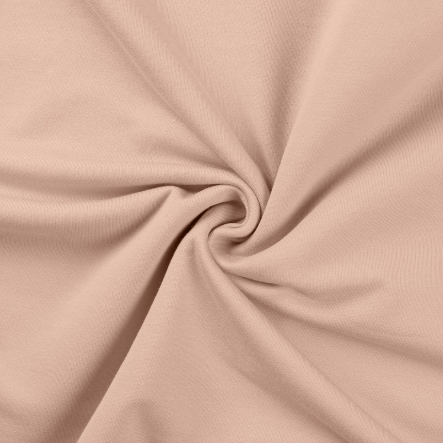 Hohwertiger Sommersweat in der Farbe puder. Die Rückseite des Stoffes ist nicht angeraut! Der SommerSweat eignet sich hervorragend zum Nähen von Kleidern, Hosen, Oberteilen und Westen.
