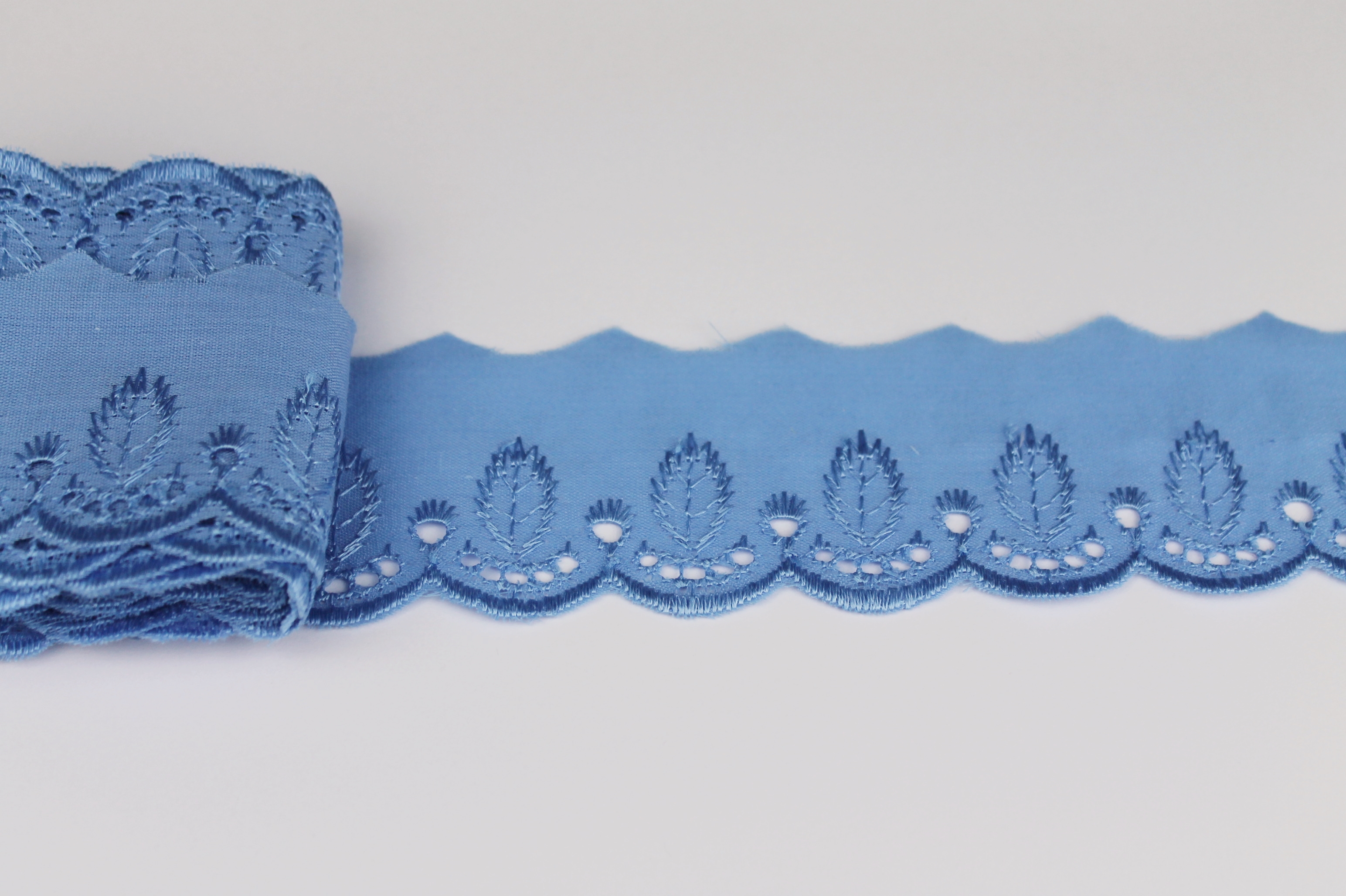 Spitze mit Lochstickerei und Muschelkante - jeansblau