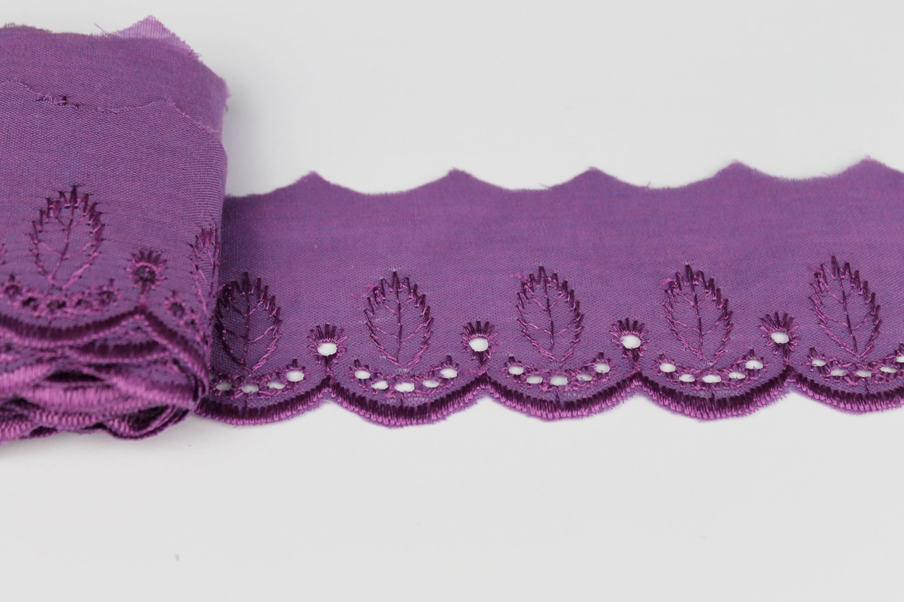 Hochwertige weiße Spitze mit Lochstickerei zum Verzieren von Röcken und Kleidern.