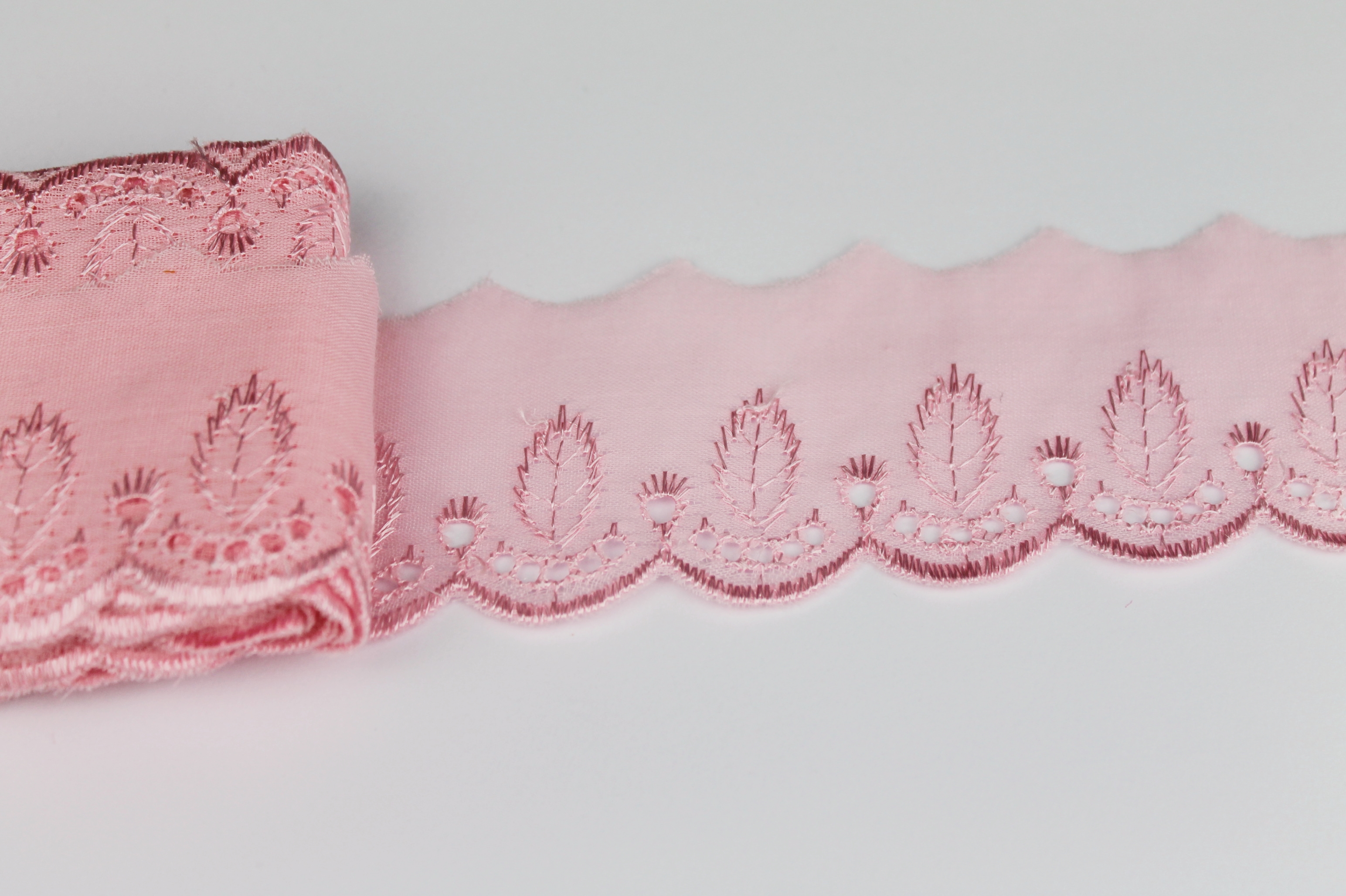 Spitze mit Lochstickerei und Muschelkante - rosa