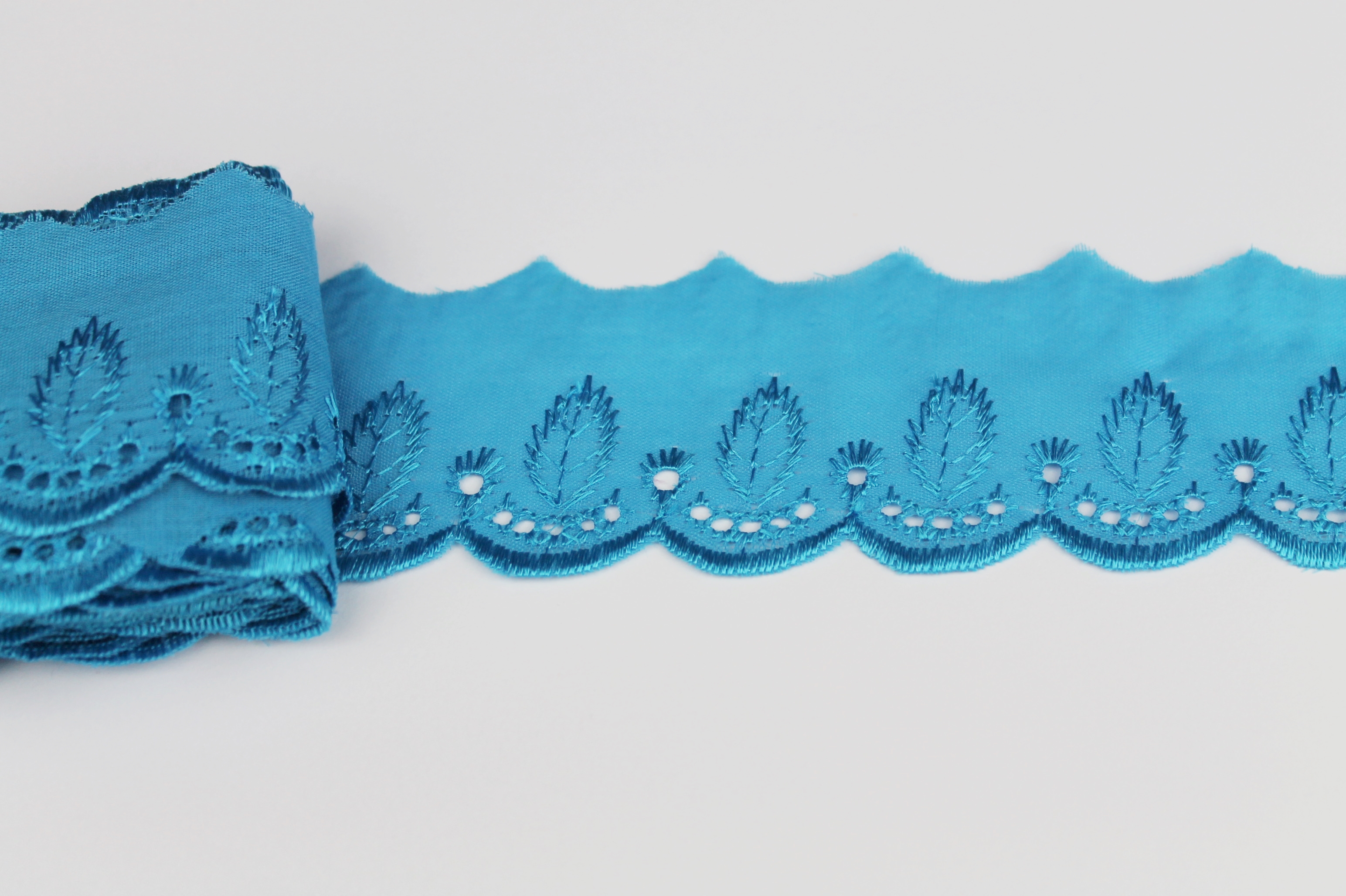 Spitze mit Lochstickerei und Muschelkante - türkis