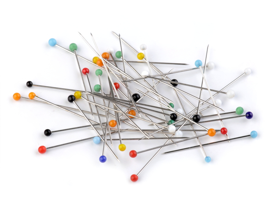 Praktische Glaskopfstecknadeln im Plastikbehälter.
