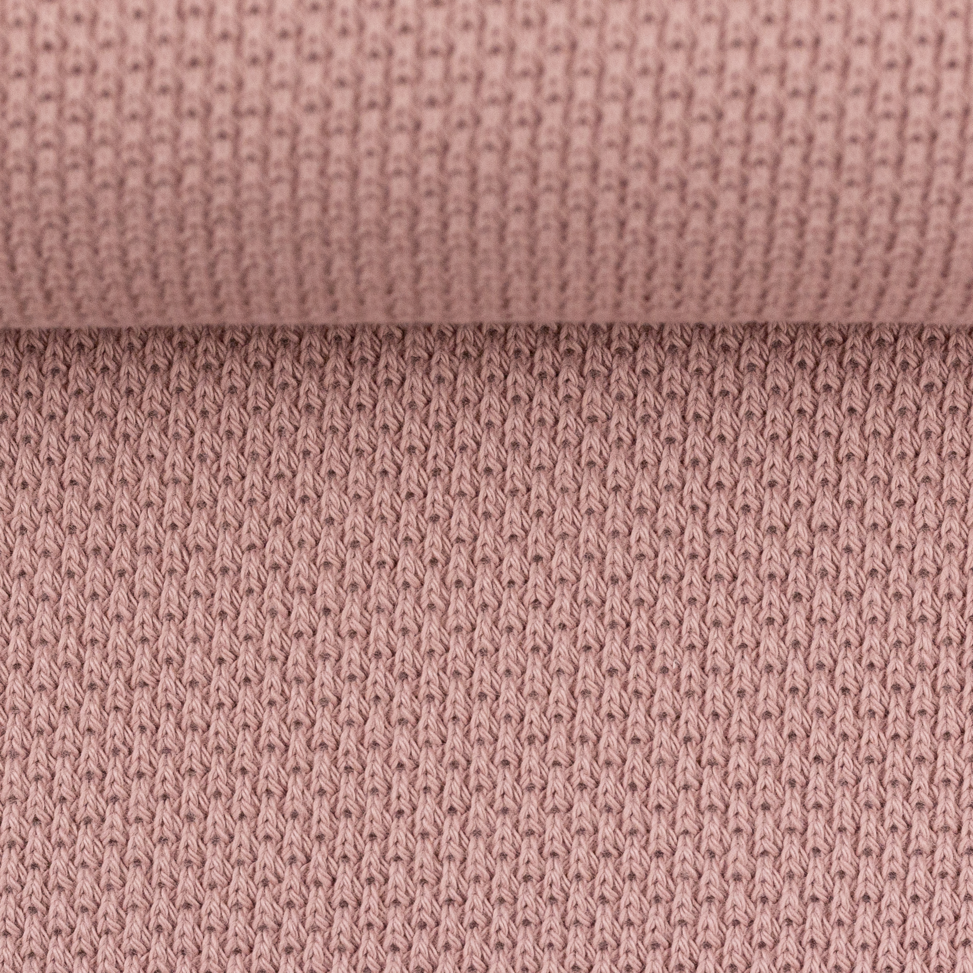 Traumhafter Strickstoff in rosa von Swafing. Bei uns findest du den tollen Skadi in schwarz, rosa und jeansblau. Aus dem Stoff kannst du tolle Cardigans, Kleider und Pullover nähen.