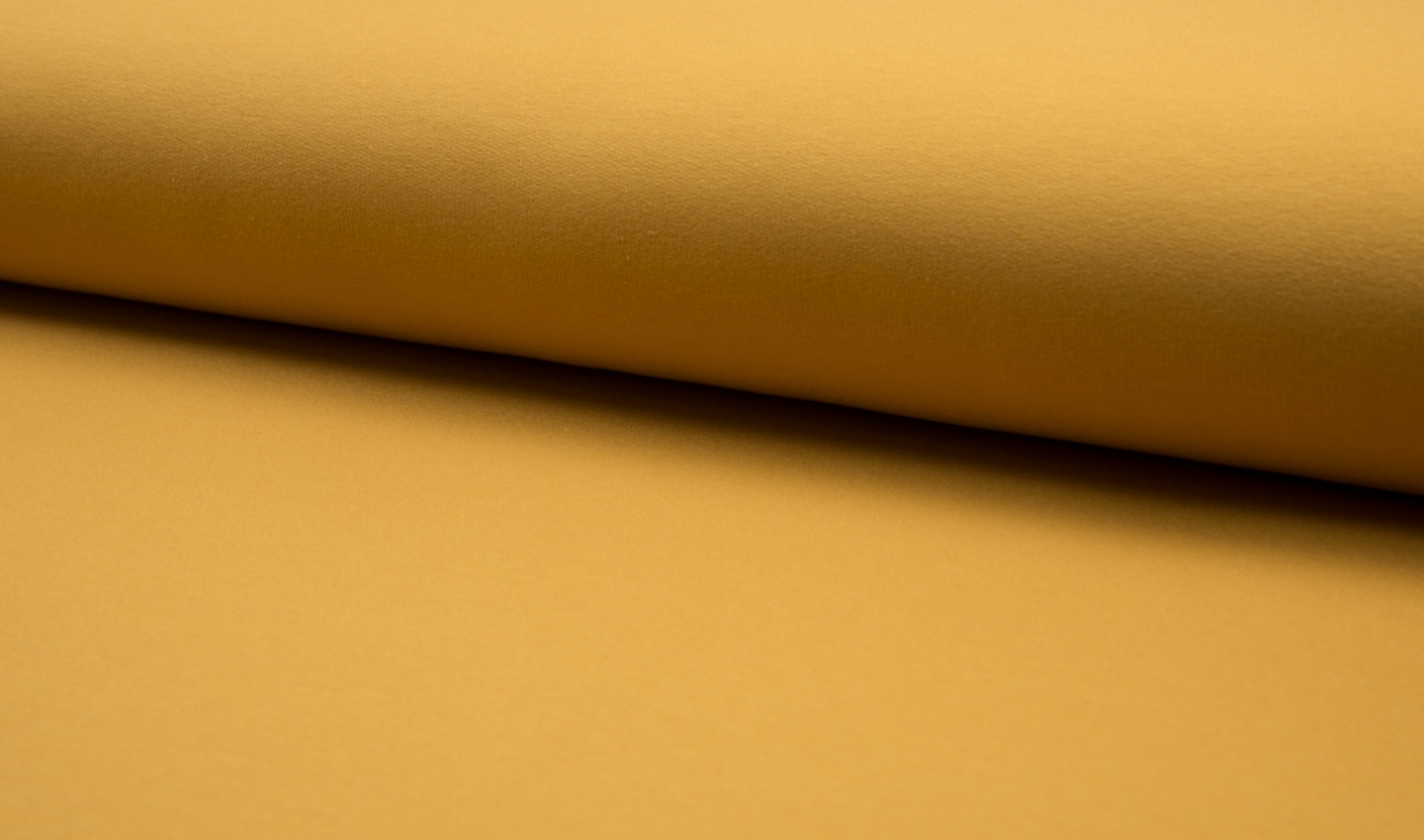 Hochwertiger unifarbener Sweat (French Terry brushed) in ocker. Der Sweat ist auf der Innenseite angeraut (also flauschig). Er eignet sich hervorragend zum Herstellen von Kinderbekleidung und durch seine nicht zu steife Dicke auch für Damenröcke, Kleider und Oberteile.