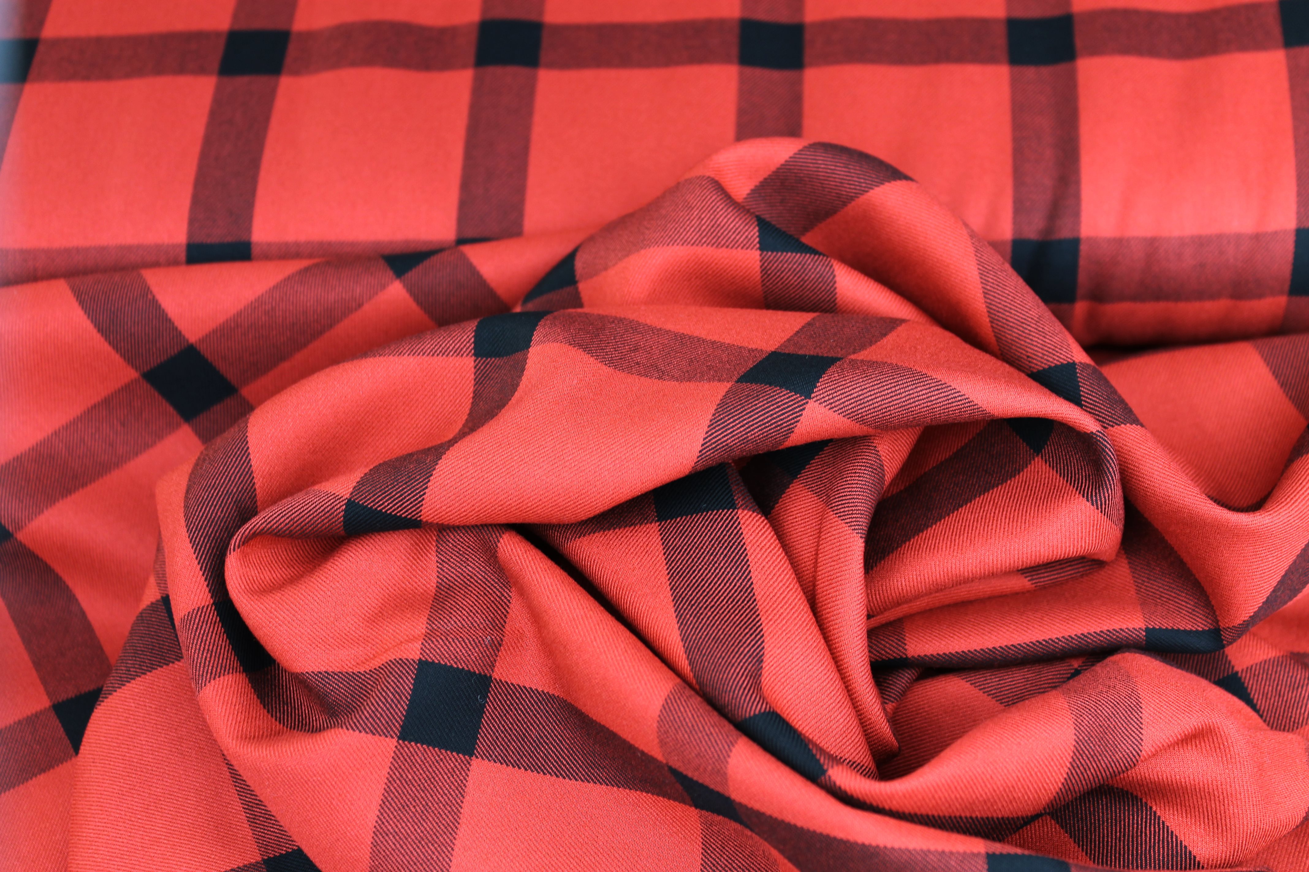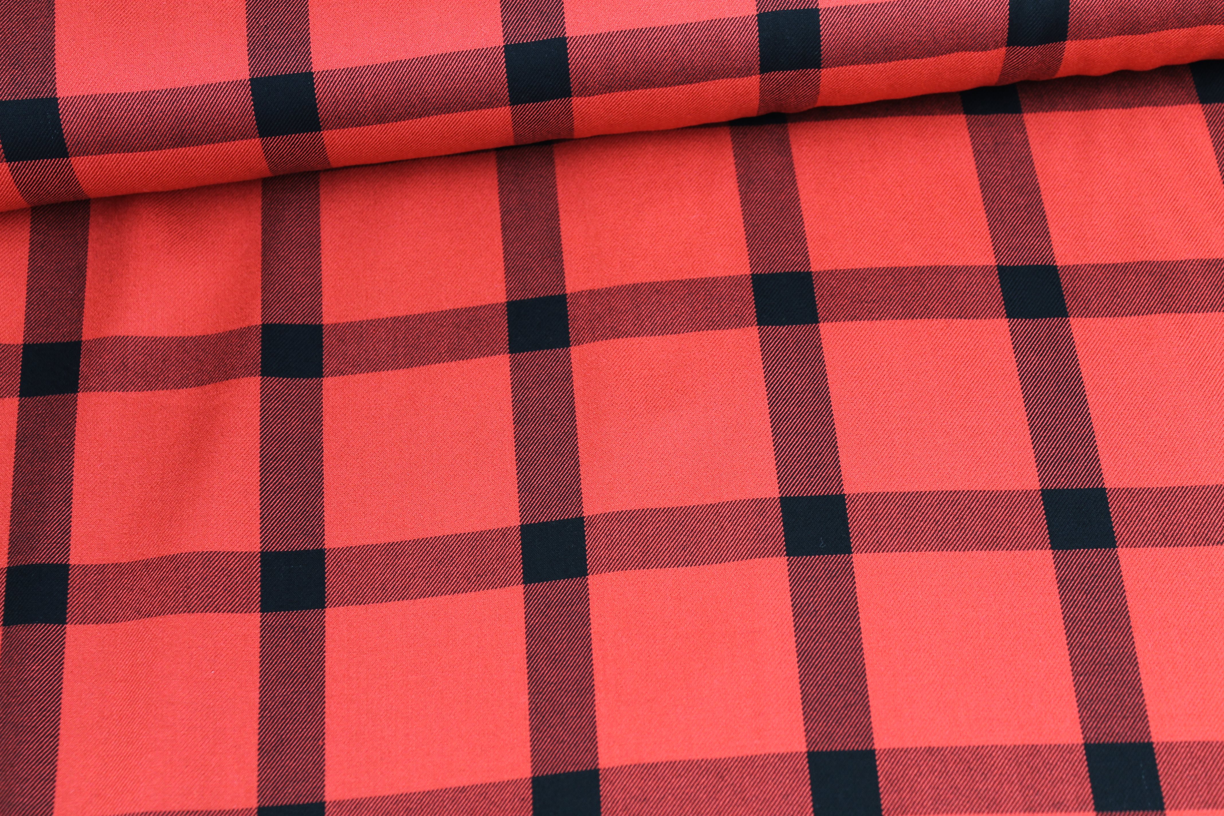 Preview: Viskose "Checks" - kariert rot / schwarz