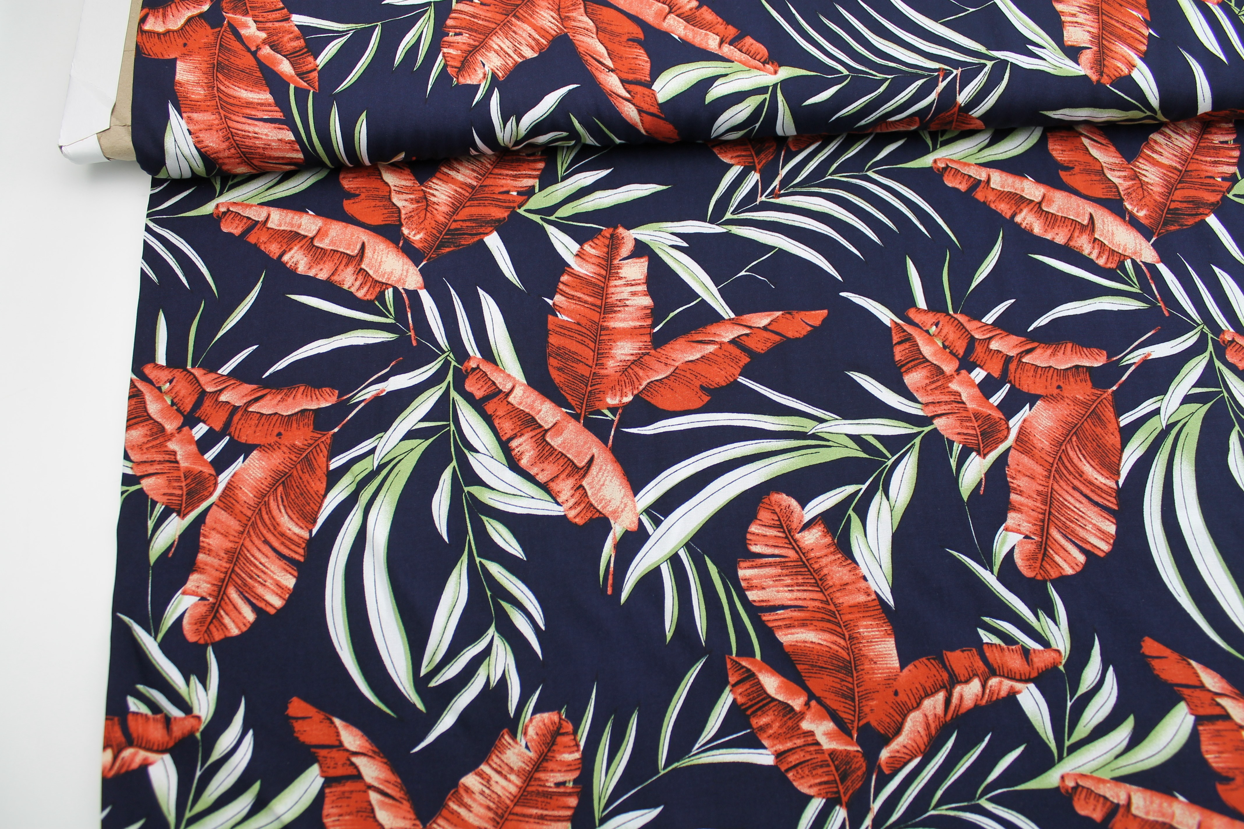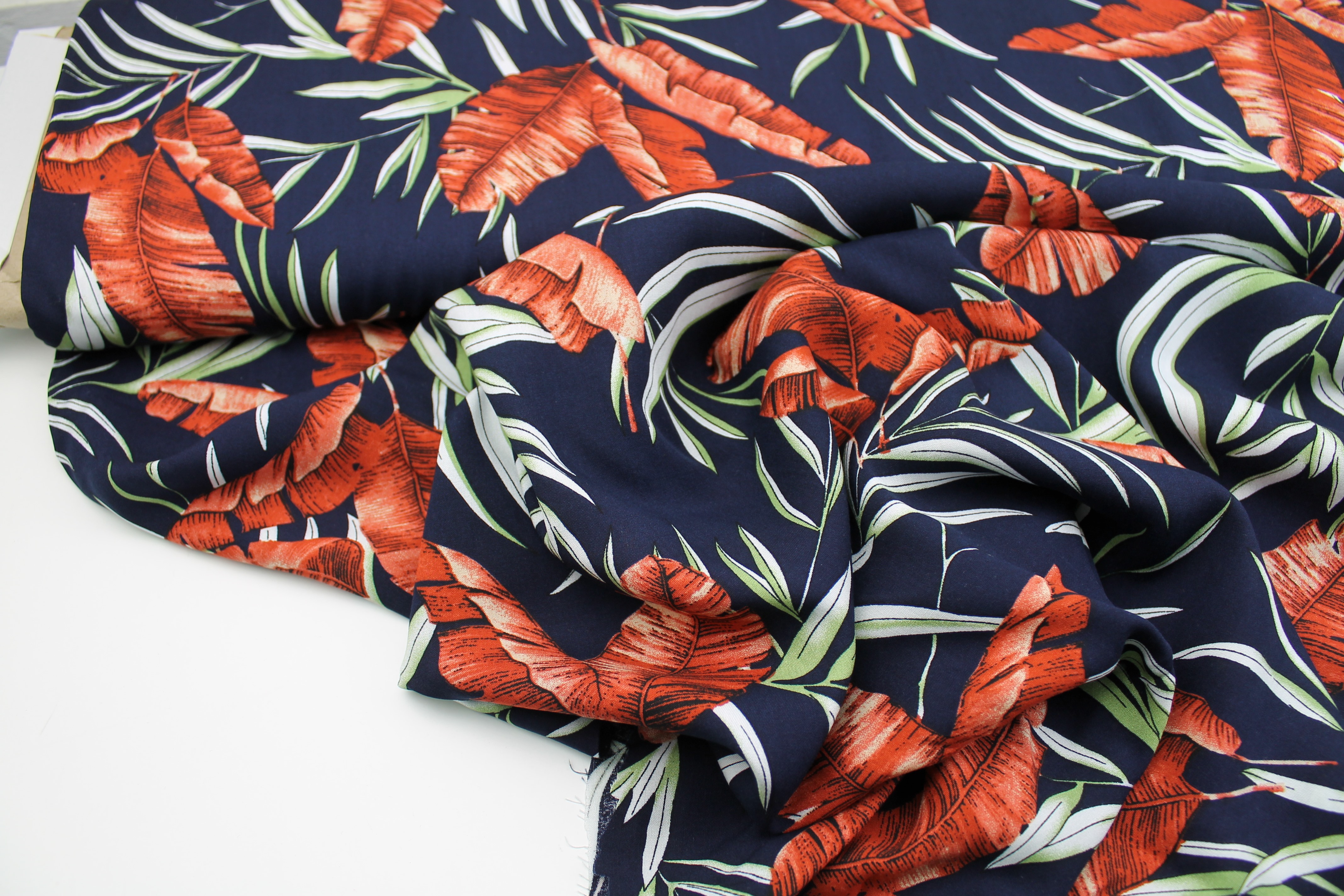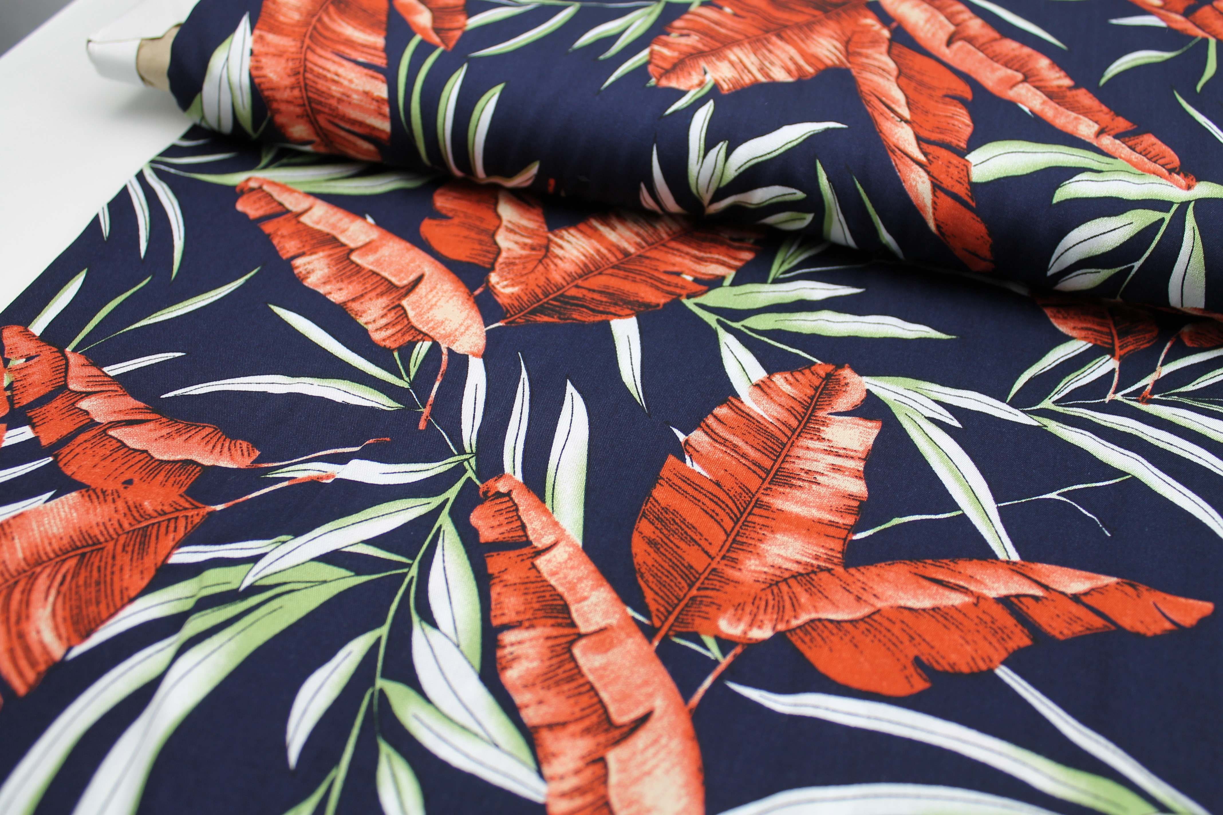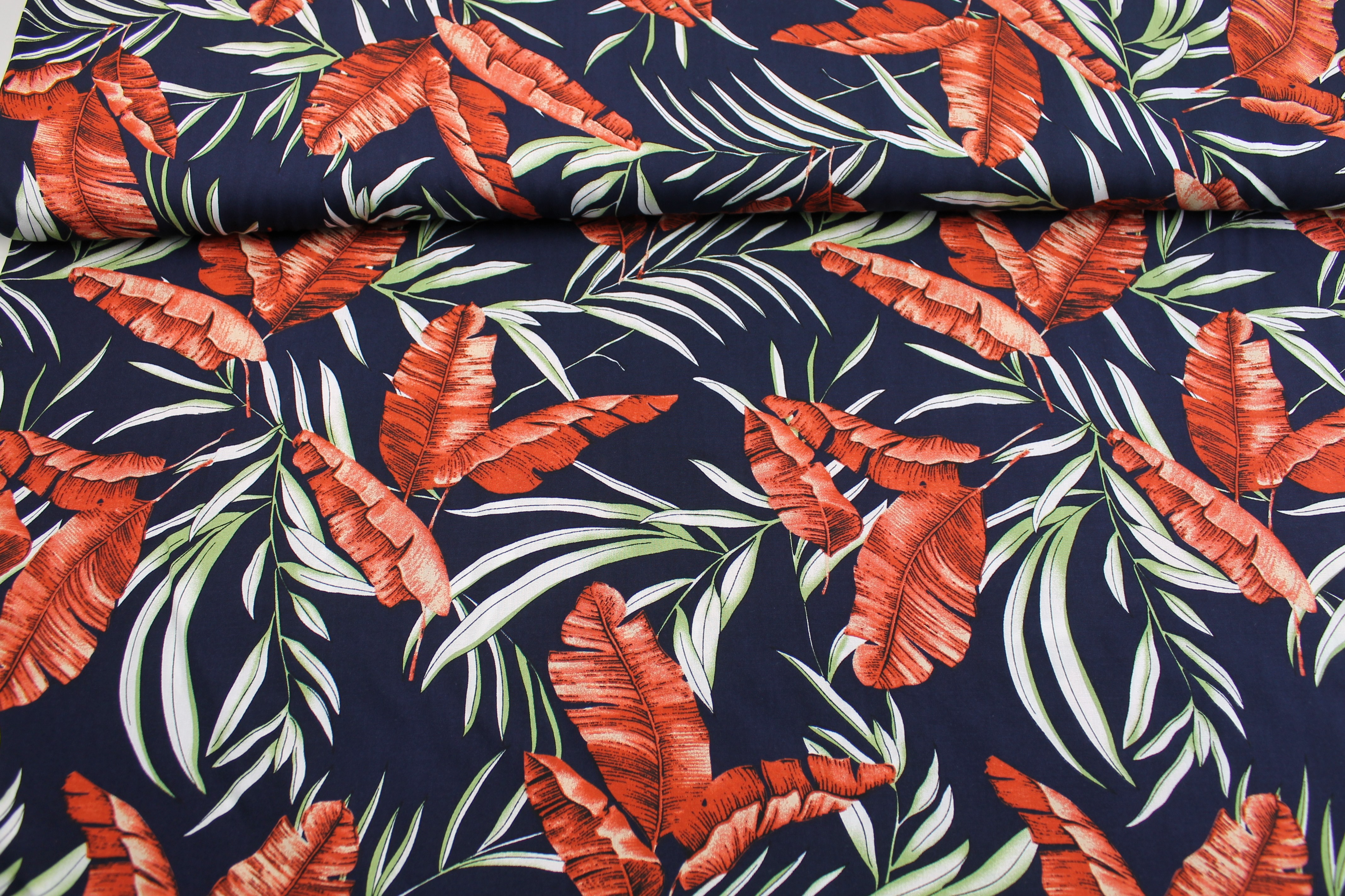 Viskose Stoff "Bananenblatt" dunkelblau rost