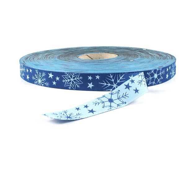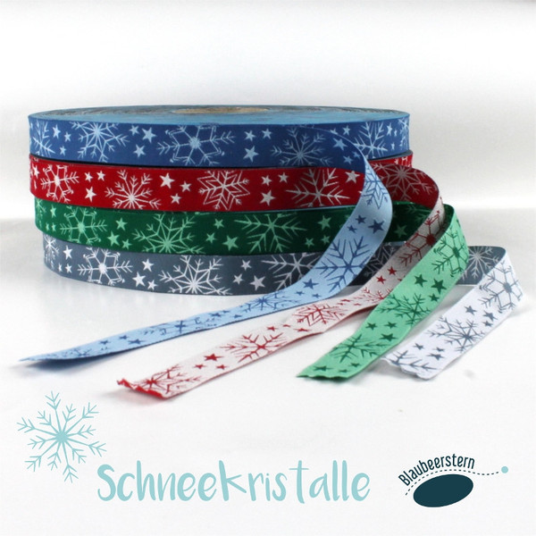 Winterliches Webband mit Schneekristallen von Blaubeerstern. Das Webband kann beidseitig genutzt werden!