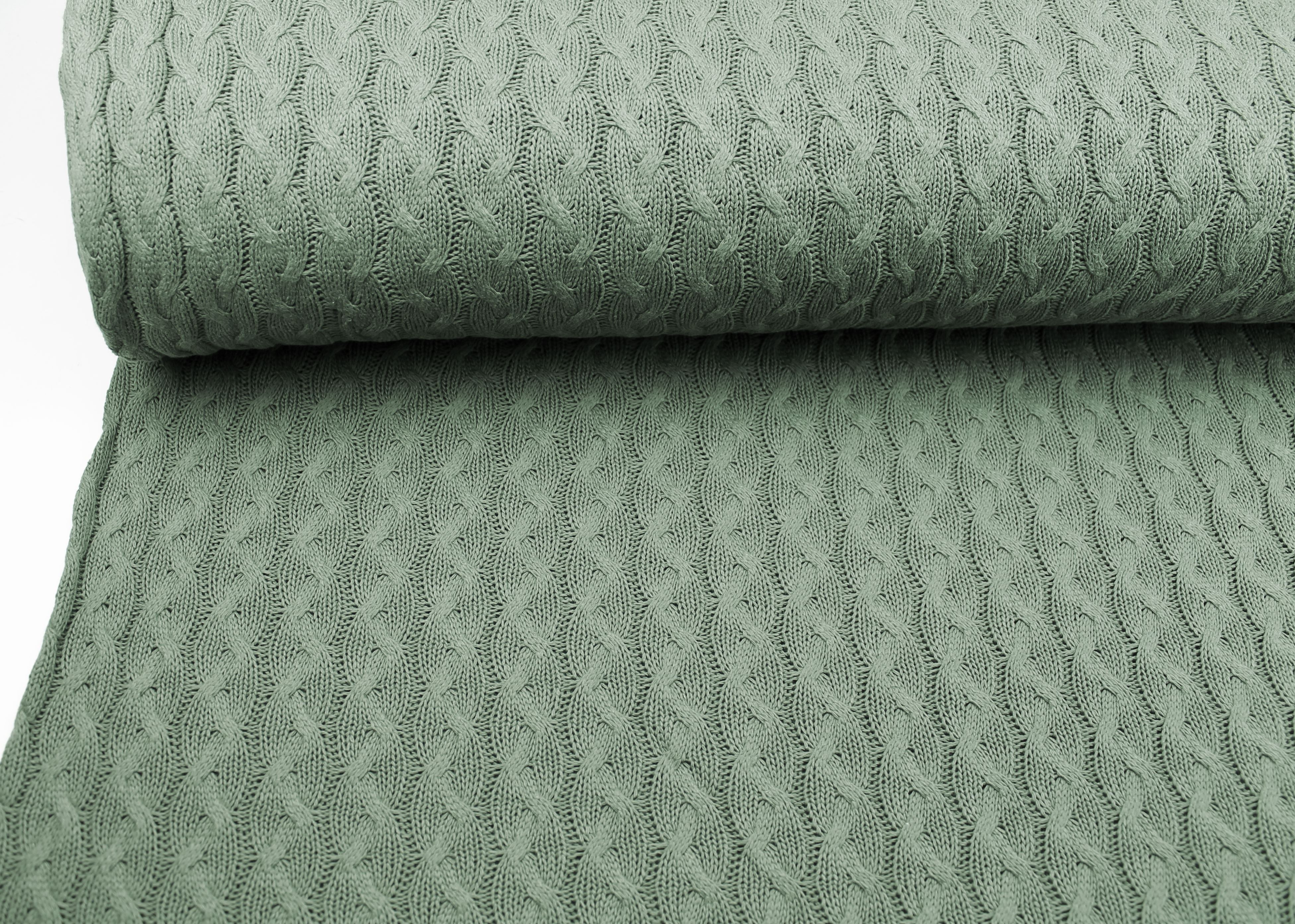 Weicher und angenehmer Strickstoff mit Zopfstrickmuster. Aus dem Strick kannst Du tolle Mützen und Pullover nähen.