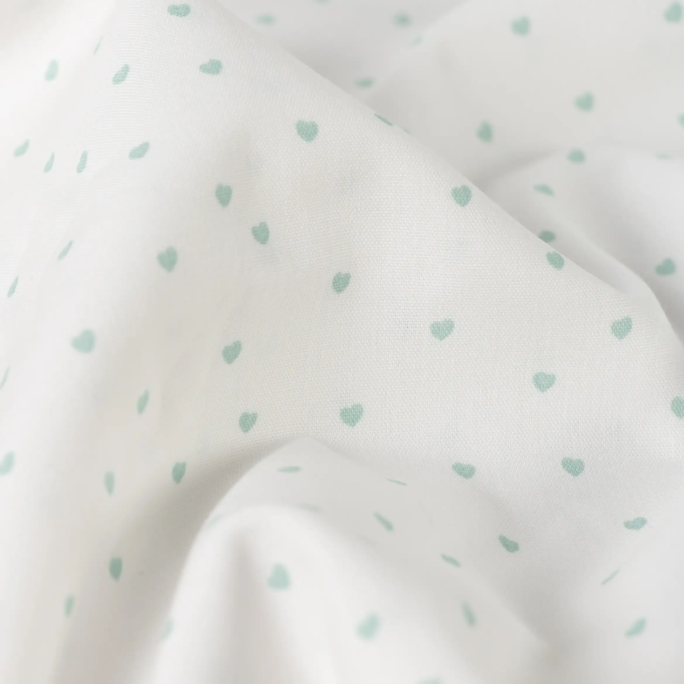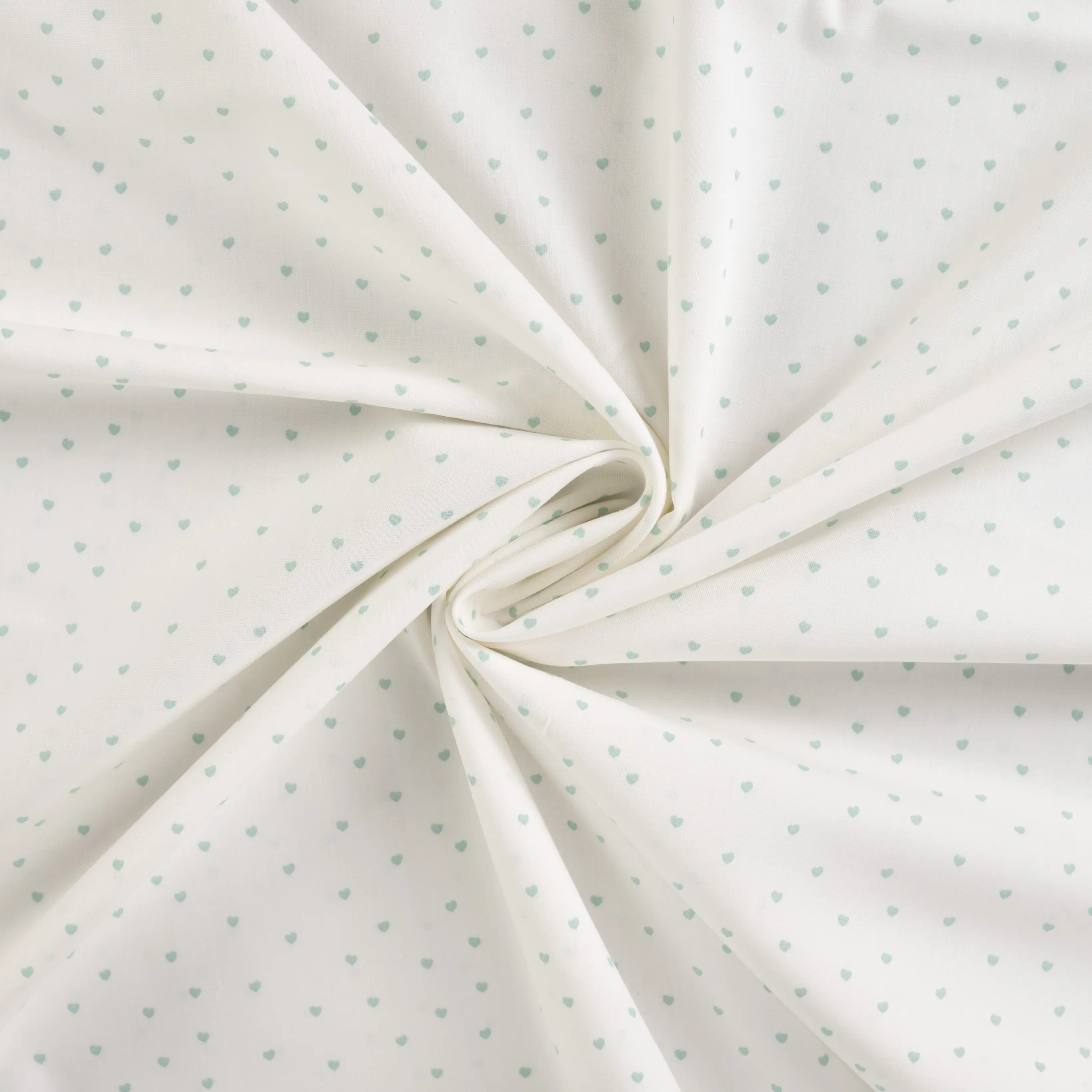 Startseite » Stoffe » Webware » Webware - gemustert » Baumwollstoff weiß mit mintfarbenen Herzen – Popeline