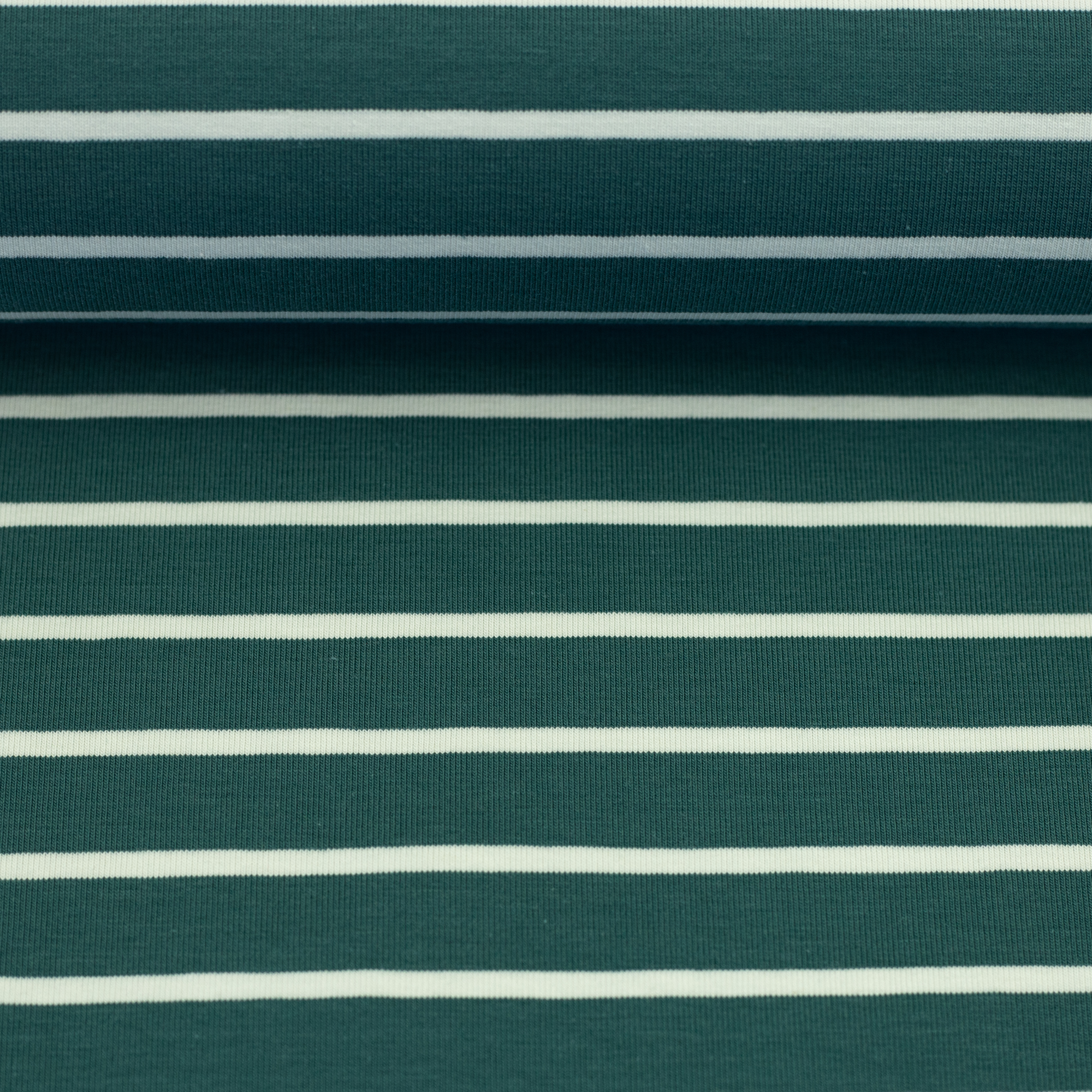 Startseite » Stoffe » Jersey » Jersey - gemustert » Baumwolljersey ISA Streifen petrol weiß – Swafing Jersey Stoff