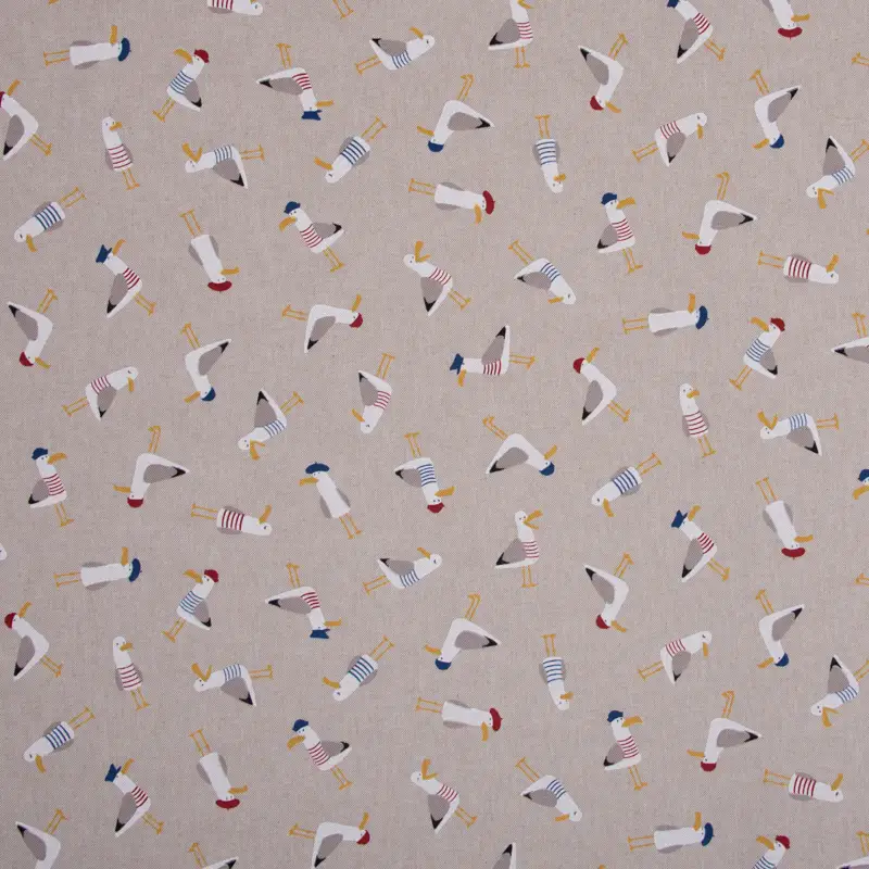 Dieser hochwertige Canvas Stoff mit Möwen-Motiv bringt sofort echtes Küstenfeeling in deine Projekte. Die kleinen Möwen im maritimen Look machen den Stoff zu einem perfekten Begleiter für sommerliche und nordisch inspirierte Nähideen.