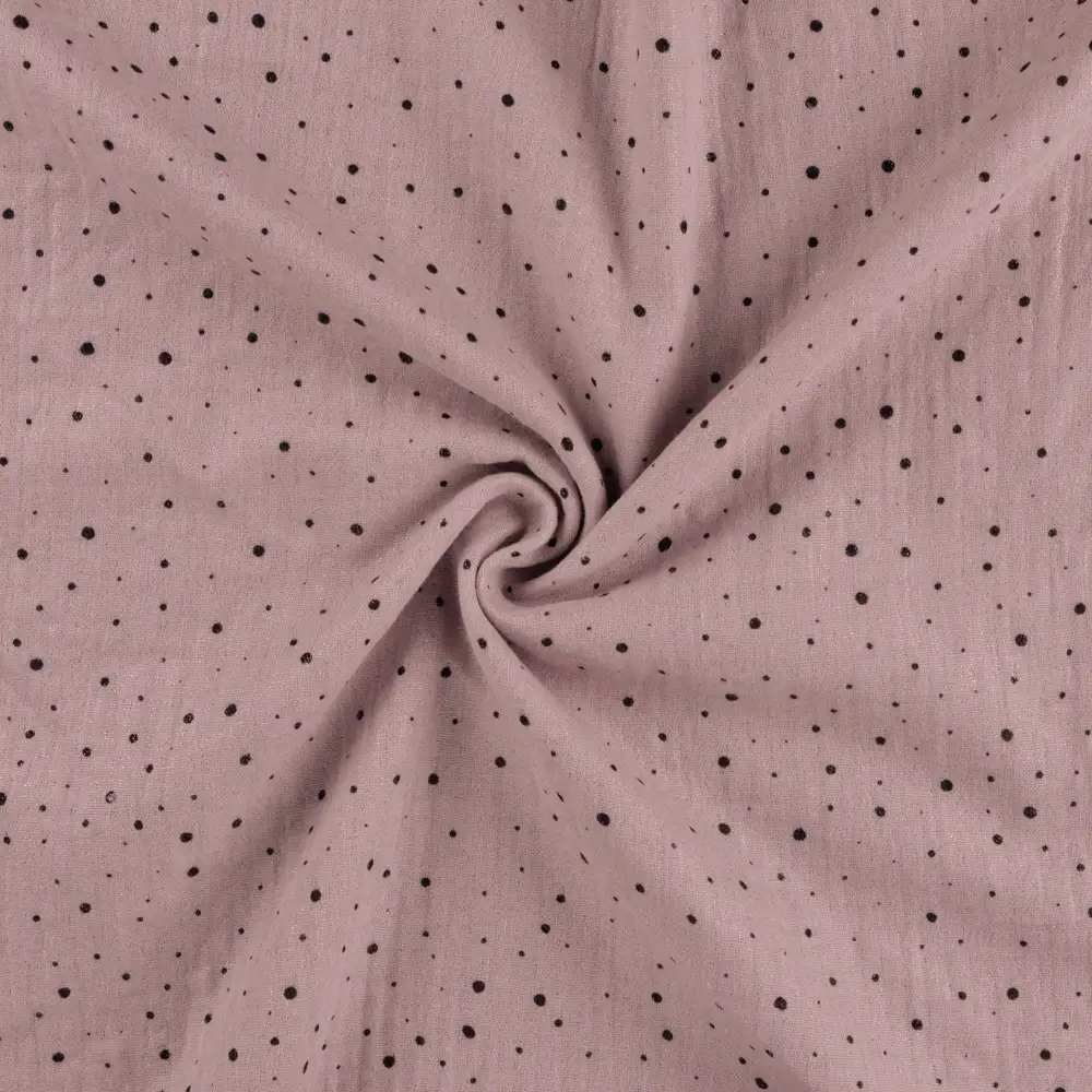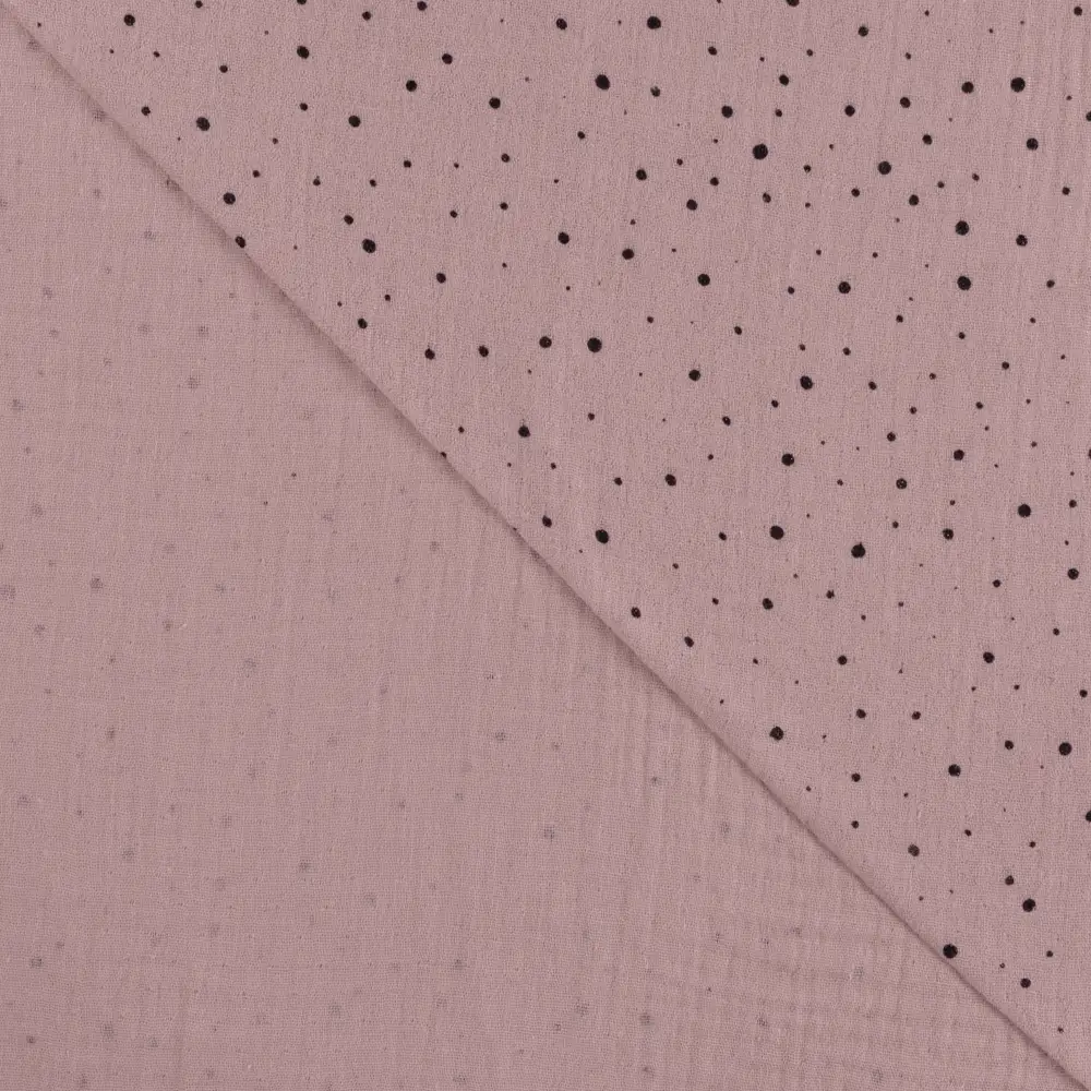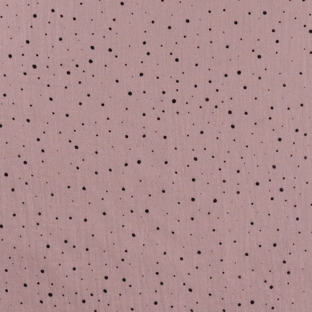 Dieser Musselin in Altrosa besticht durch seine feine Struktur, kleine schwarze Punkte und einen dezenten Glitzereffekt. Die Kombination wirkt modern und gleichzeitig verspielt.