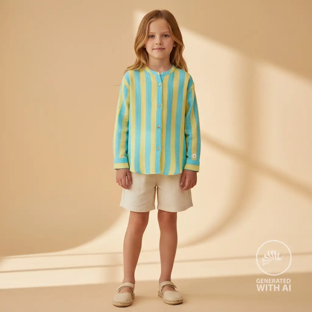 Dieser Musselin überzeugt mit einem frischen Streifendesign in Türkis und Gelb. Die Kombination der Farben wirkt lebendig und sommerlich und macht den Stoff zu einem echten Hingucker für kreative Projekte.